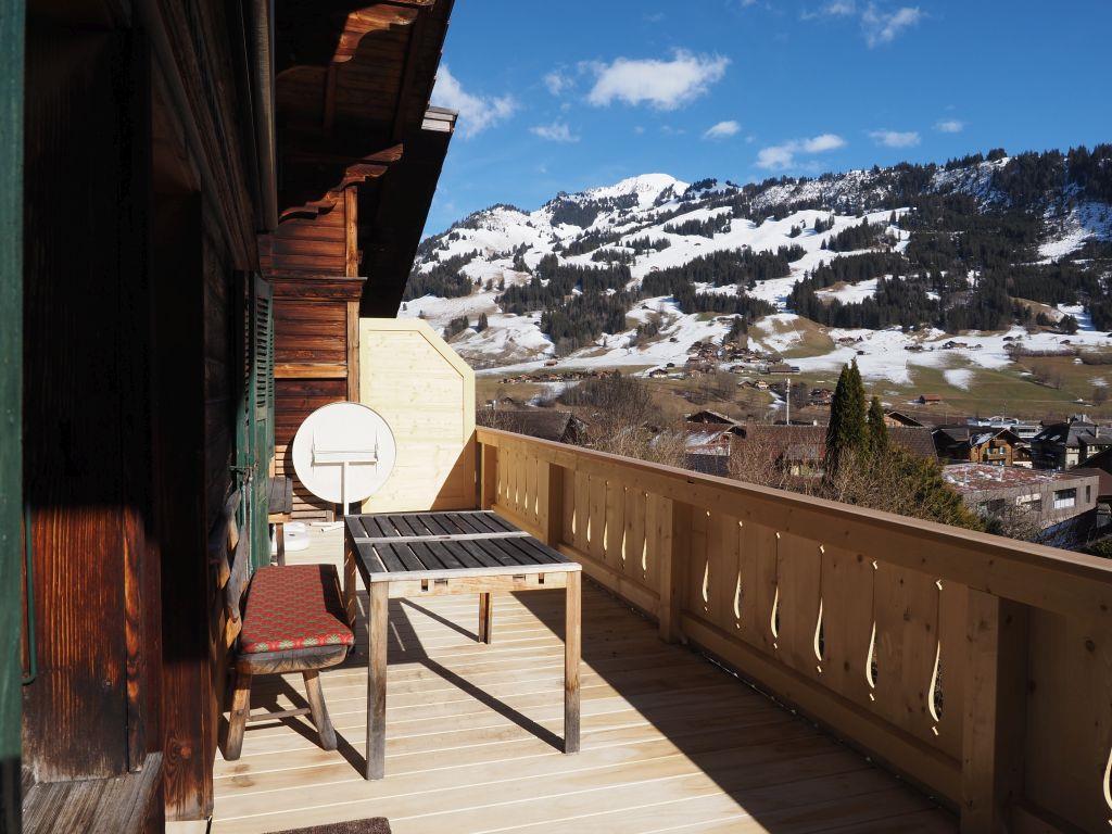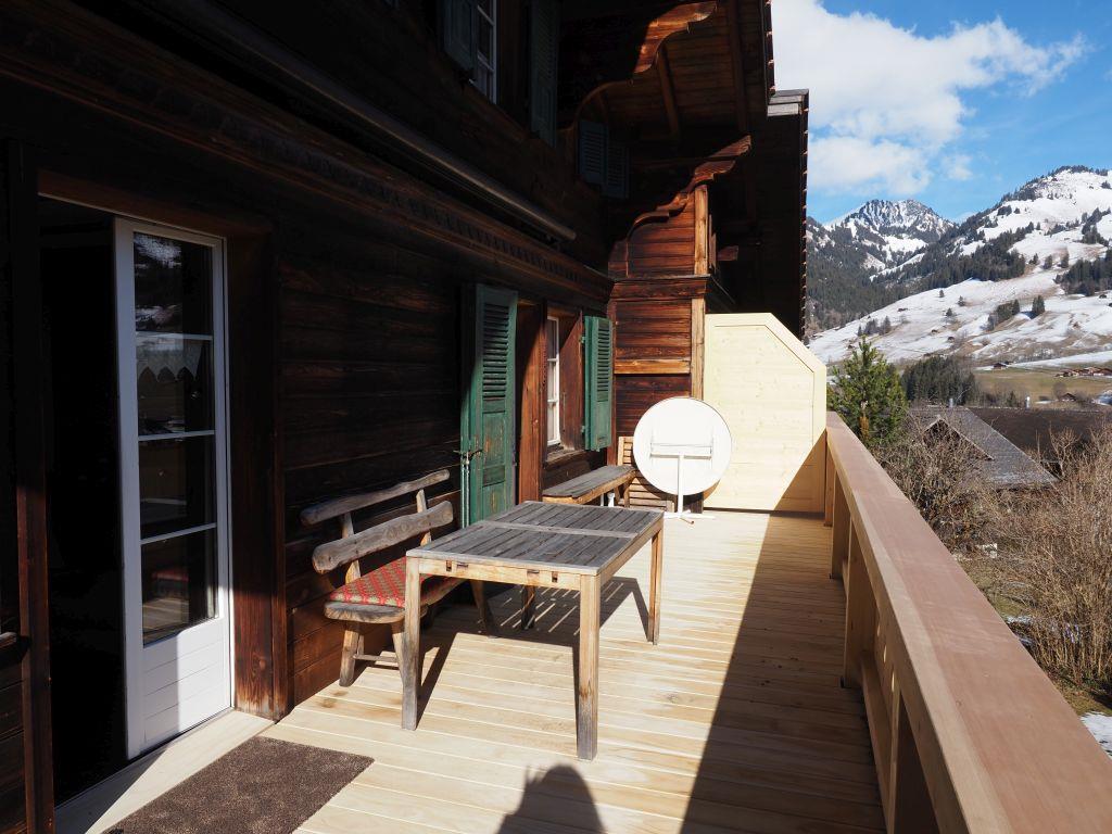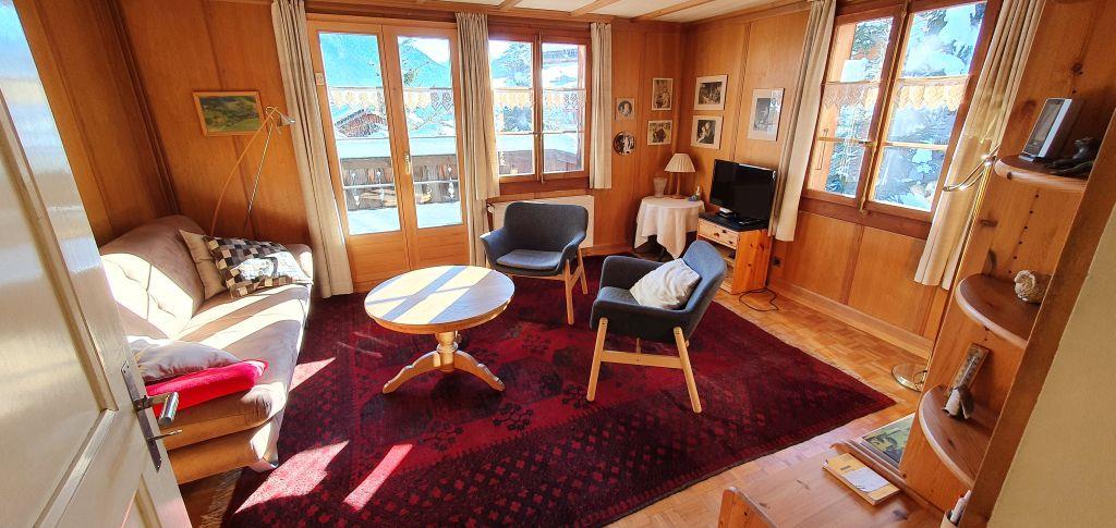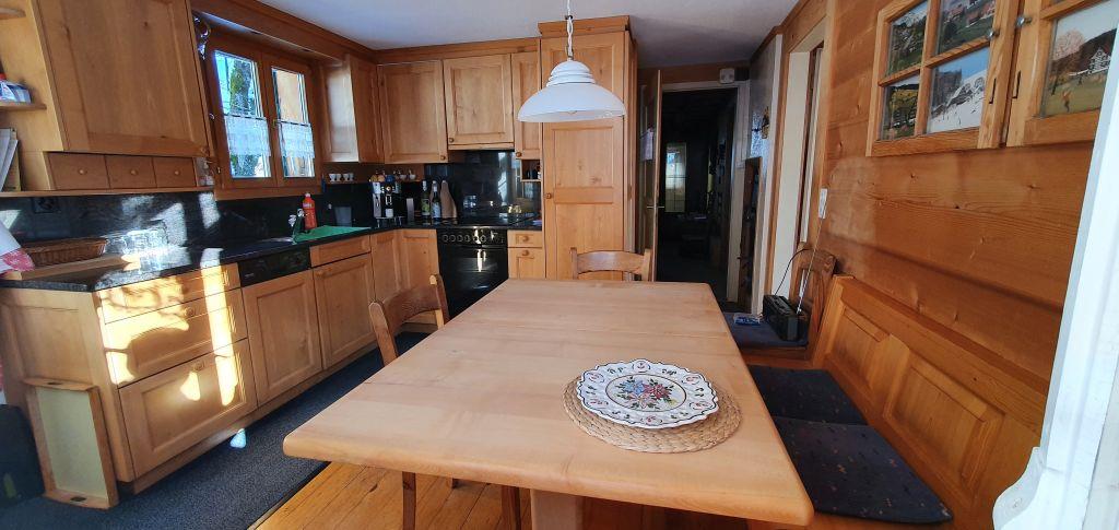 5-Zimmerwohnung (100m2) in einem heimeligen Chalet in Zentrumsnähe von Zweisimmen. 7 Gehminuten zum Bahnhof oder der Gondelbahn Rinderberg.  Ruhige und sonnige Lage. Der Aussensitzplatz direkt vor der Küche und der grosse Balkon bieten einen schönen Ausblick ins Tal und auf die Berge. Der Parkplatz ist direkt vor dem Haus. Die Waschmaschine (CHF 5.00) und der Wäschetrockner stehen zur gemeinschaftlichen Benutzung zur Verfügung.
