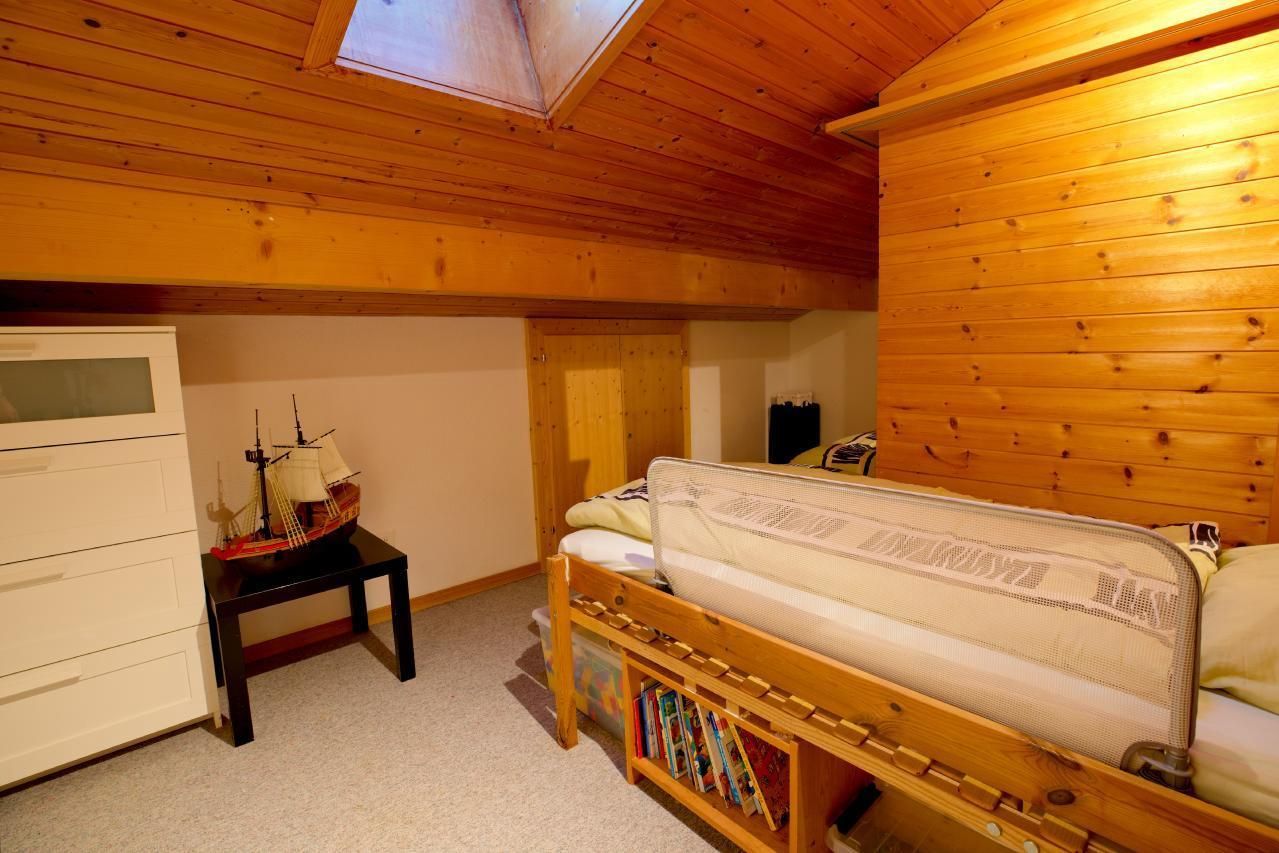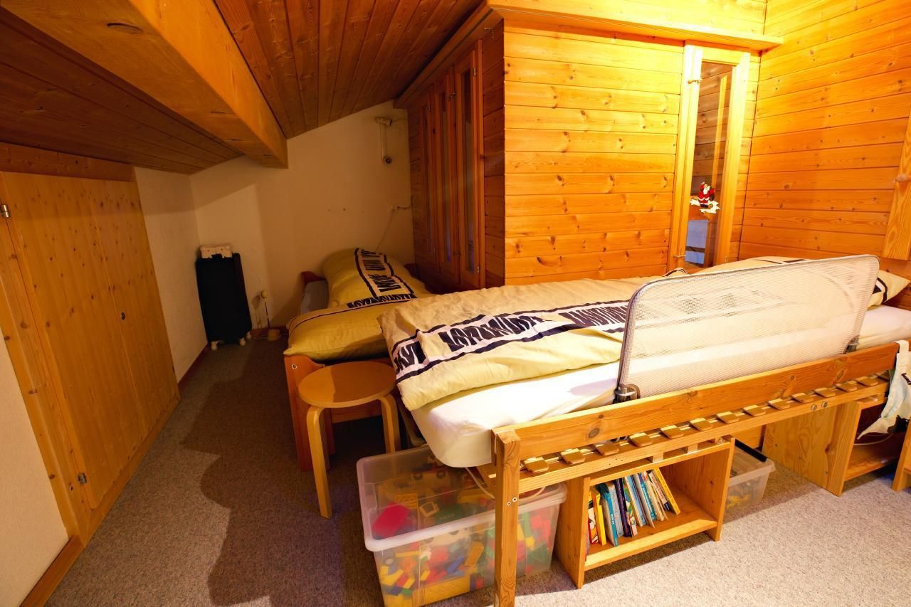 Die Wohnung ist über zwei Stockwerke verteilt. Im unteren Stock befindet sich der Eingang mit Garderobe, einer Nasszelle und zwei WCs. Ebenfalls im unteren Stock befindet sich ein geräumiges Zimmer mit komfortablen Doppelbett (160x200cm) und grossem Wandschrank.
