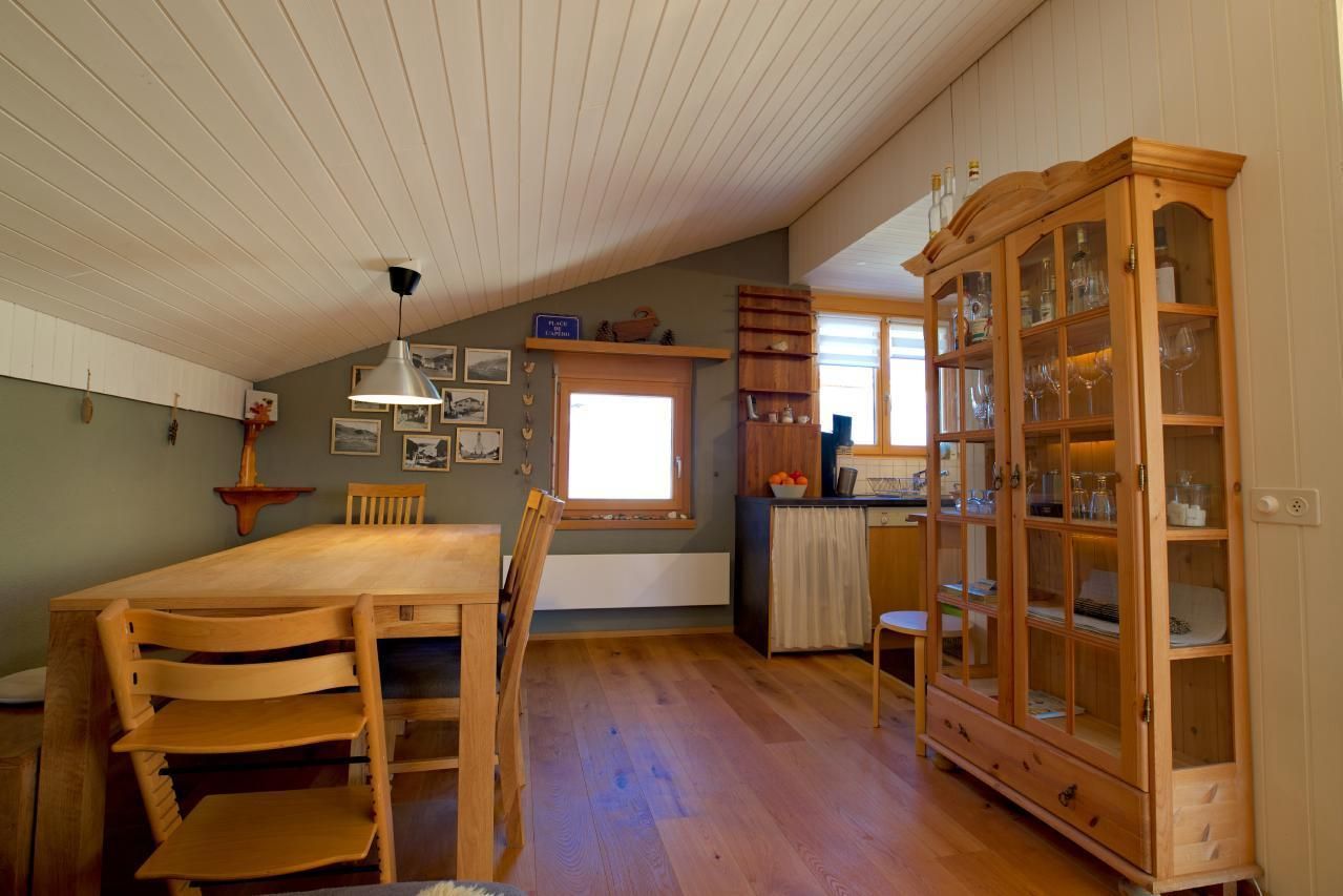 Vom Eingangsbereich gelangt man in das grosse Wohn- und Esszimmer mit offener Küche. Das Sofa im Wohnzimmer kann zu einem grossen Doppelbett (180x220 cm) ausgezogen werden. Die Wohnung besitzt viele Spielsachen, ein Tripp Trapp mit Schutz, ein Kindersitz und ein Babybett.