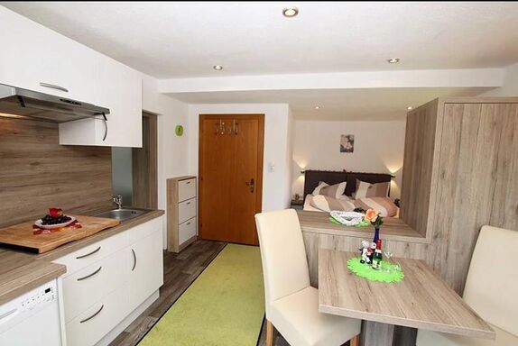 Das moderne, helle Studio 2 mit ca. 30m² besteht aus: 1 Wohnschlafzimmer; kleiner Essbereich, voll ausgestattete Küchenzeile mit Kaffeemaschine, Wasserkocher, Kühlschrank, Spülmaschine uvm.; Flat-TV; 1 Badezimmer mit Du/WC und Föhn; Südbalkon mit herrlicher Aussicht