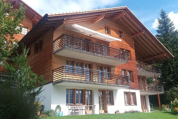 Zentral gelegene Ferienwohnung in Hasliberg Reuti: 1 Minute zum Bus, 2 Minuten zur Seilbahn, 2 Minuten zum Dorfladen. Trotzdem ruhige Lage, kein Verkehr.