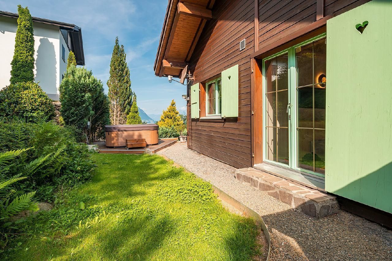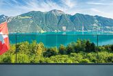 Dieses komplett neu renovierte, traumhafte Chalet befindet sich an einer unbefahrenen, ruhigen Privatstrasse mit unverbauter und umwerfender Aussicht auf den Vierwaldstättersee und die umliegende Bergwelt! Ausstattung: Das luxuriöse Chalet ist komplett ausgerüstet wie ein Einfamilienhaus. Es verfügt über 3 Schlafzimmer und ist für max. 6-8 Personen geeignet. Vor dem Haus finden Sie einen Parkplatz für 2 Autos. Über eine Steintreppe kommen Sie zum Haupteingang mit Terrasse. EG Das Erdgeschoss ist mit einer grossen Garderobe ausgestattet. Sie finden auf diesem Stockwerk einen Tischfussballkasten sowie einen Naturkeller mit versch. alkoholischen Getränken zu Ihrer Verfügung. Dazu die Waschküche (Waschmaschine/Tumbler vorhanden), ein Bad mit Dusche sowie ein Schlafzimmer für 2 Personen mit Aussicht auf den See. OG Über eine Wendeltreppe kommen Sie ins 1. Obergeschoss. Dort finden Sie eine komplett ausgerüstete, moderne Küche (Fondue, Raclette vorhanden) mit Geschirrspüler, Induktionsherd, Backofen sowie einem grossen Food Center. Weiter gibt es einen grossen Flachbildschirm-TV (Netflix vorhanden) und ein multifunktionales KOINOR-Sofa sowie einen Cheminée und ein weiteres Schlafzimmer mit einer kleinen Bibliothek. Es gibt mehrere Ausgänge auf die grosse Hauptterrasse sowie in den Garten mit Jacuzzi und finnischer Sauna. DG Im Dachgeschoss finden Sie ein weiteres Schlafzimmer mit traumhafter Aussicht auf den See. Es gibt oben ein grosses Bad mit Dusche sowie einer Hydromassage Badewanne. Dazu finden Sie dort eine Lounge sowie einen Arbeitsplatz mit iMac und Drucker vor. Garten Im Garten finden Sie versch. Sitzmöglichkeiten, Liegestühle sowie einen Gasgrill für Ihr BBQ. Dazu stehen als Höhepunkt ein Jacuzzi mit Sicht auf den See sowie eine finnische Sauna zu Ihrer Verfügung! Das Haus hat eine Bodenheizung und lässt sich mittels Thermostat oder SMS ein- und ausschalten. Das komplette Chalet wurde im Jahr 2020 von Grund auf renoviert. Geniessen Sie Ihren Urlaub in diesem absoluten Traumhaus mit unvergesslicher Aussicht auf die Zentralschweizer Bergen und den Vierwaldstättersee!