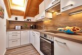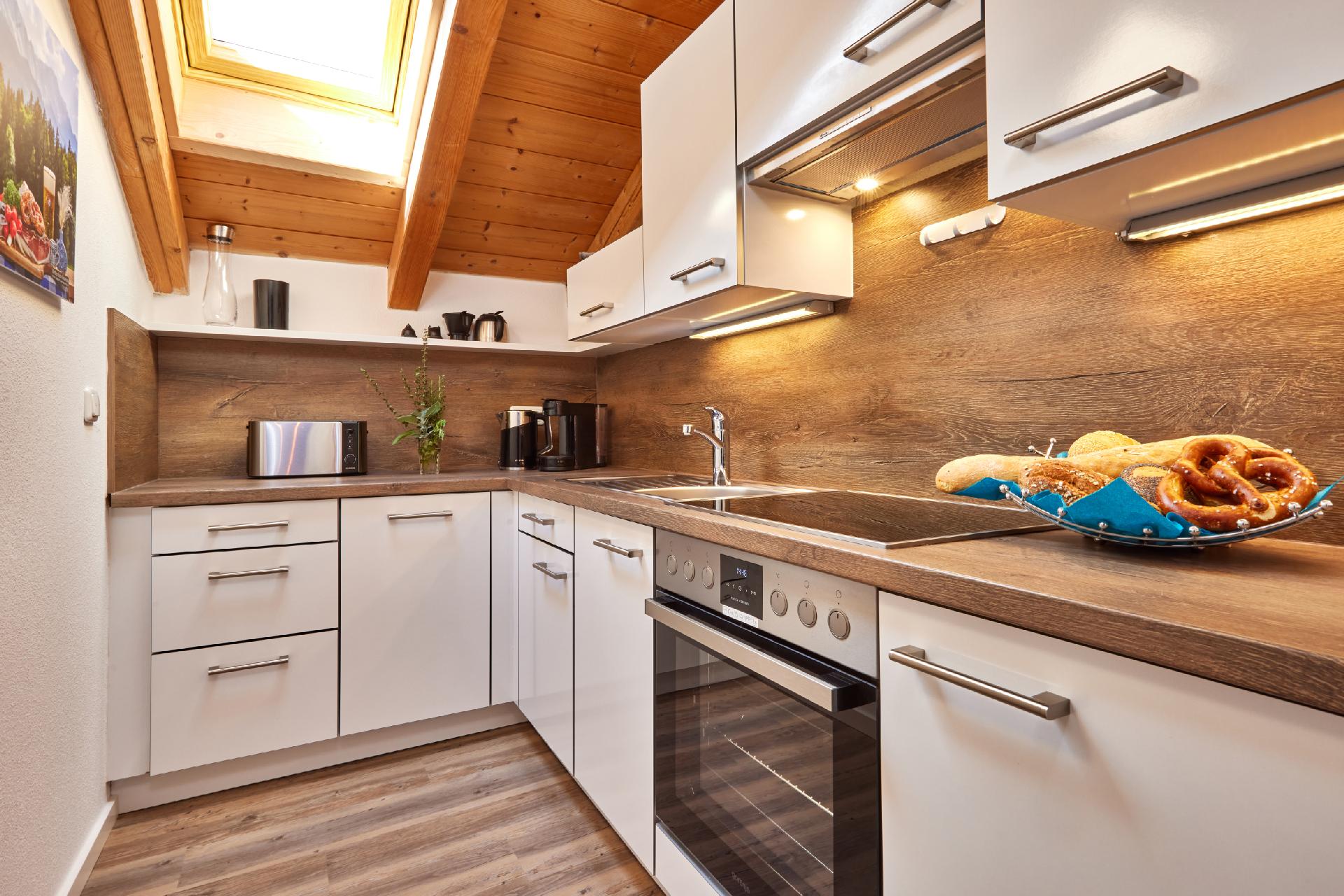 Die neue, vollausgestattete Küche mit Kühl-Gefrierkombi, 4-Platten Induktionskochfeld, Backofen, Spülmaschine, Senseo Switch Kaffeemaschine, Toaster und Wasserkocher lässt keine Wünsche offen.