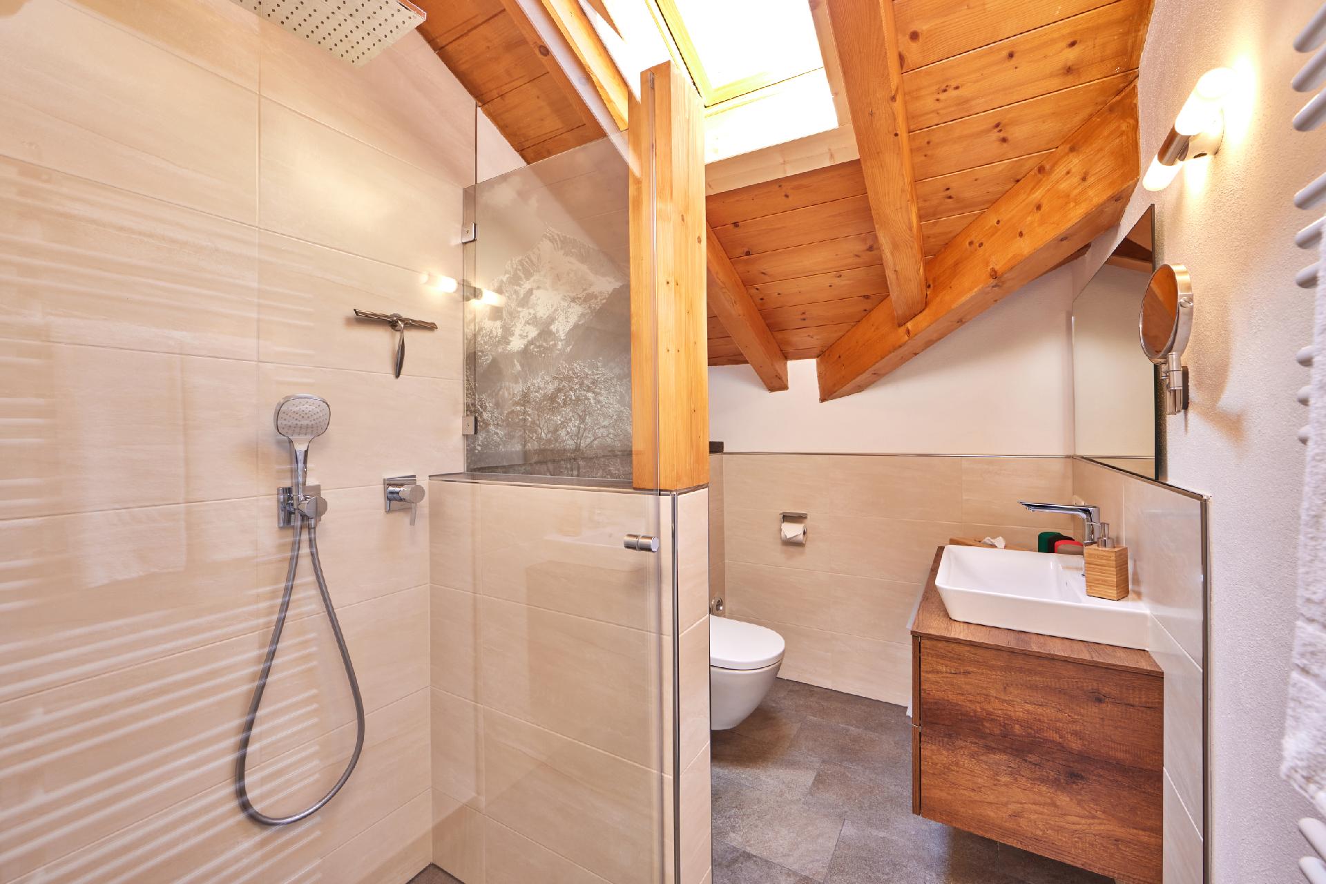 Das moderne Tageslicht-Badezimmer mit Regendusche, Fußbodenheizung und Fön ermöglicht dir sowohl einen fitten Start in den Morgen als auch einen regenerierenden Tagesausklang.