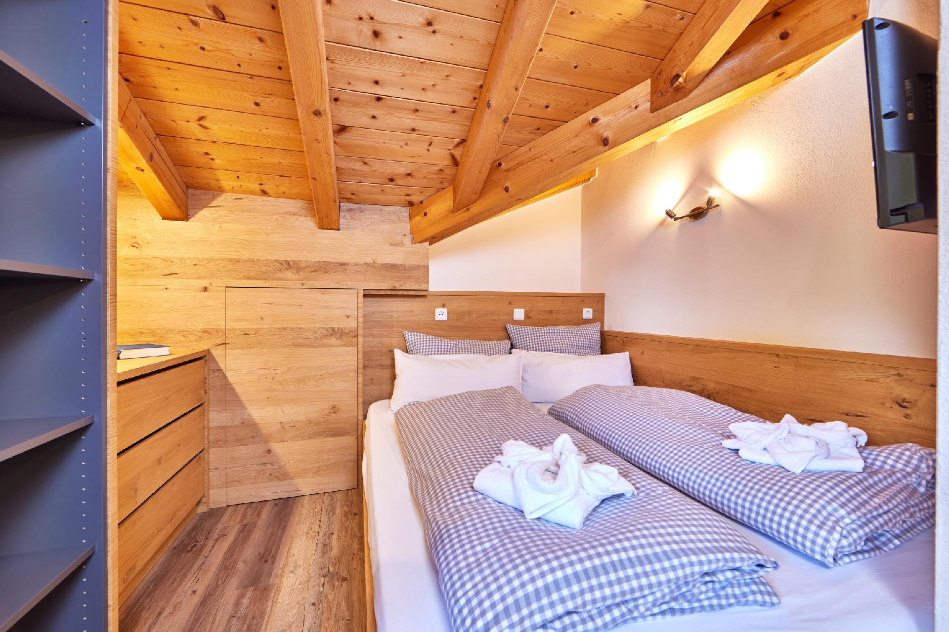 Das separate Schlafzimmer mit Doppelbett und weiterem Flachbild-Smart-TV ist der ideale Rückzugsort mit Wohlfühlatmosphäre. Hier könnt ihr die ersten Sonnenstrahlen des Tages auf dem Südbalkon genießen.