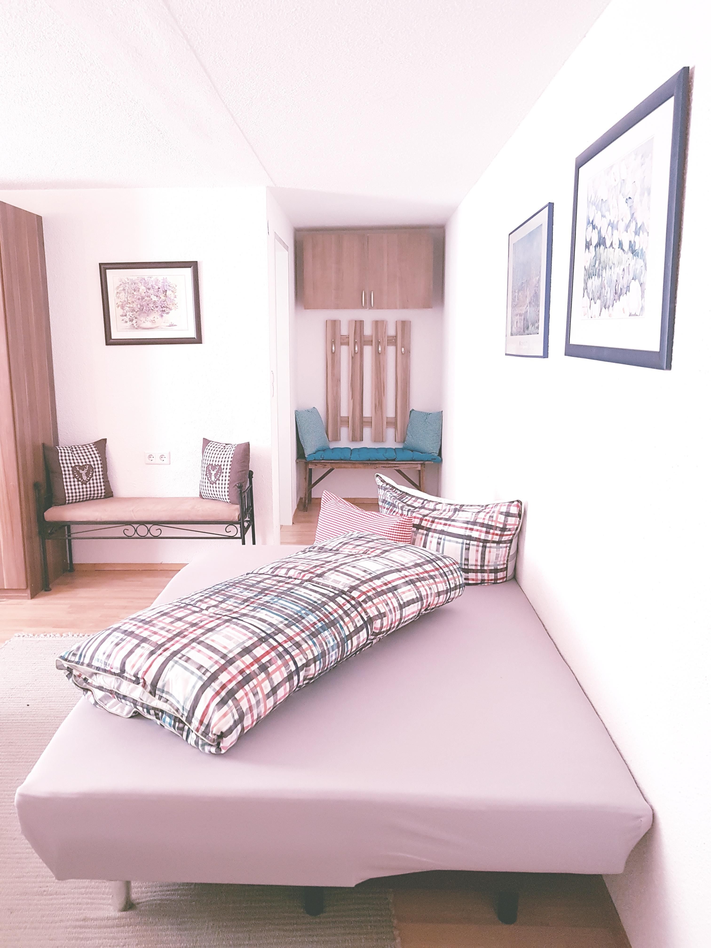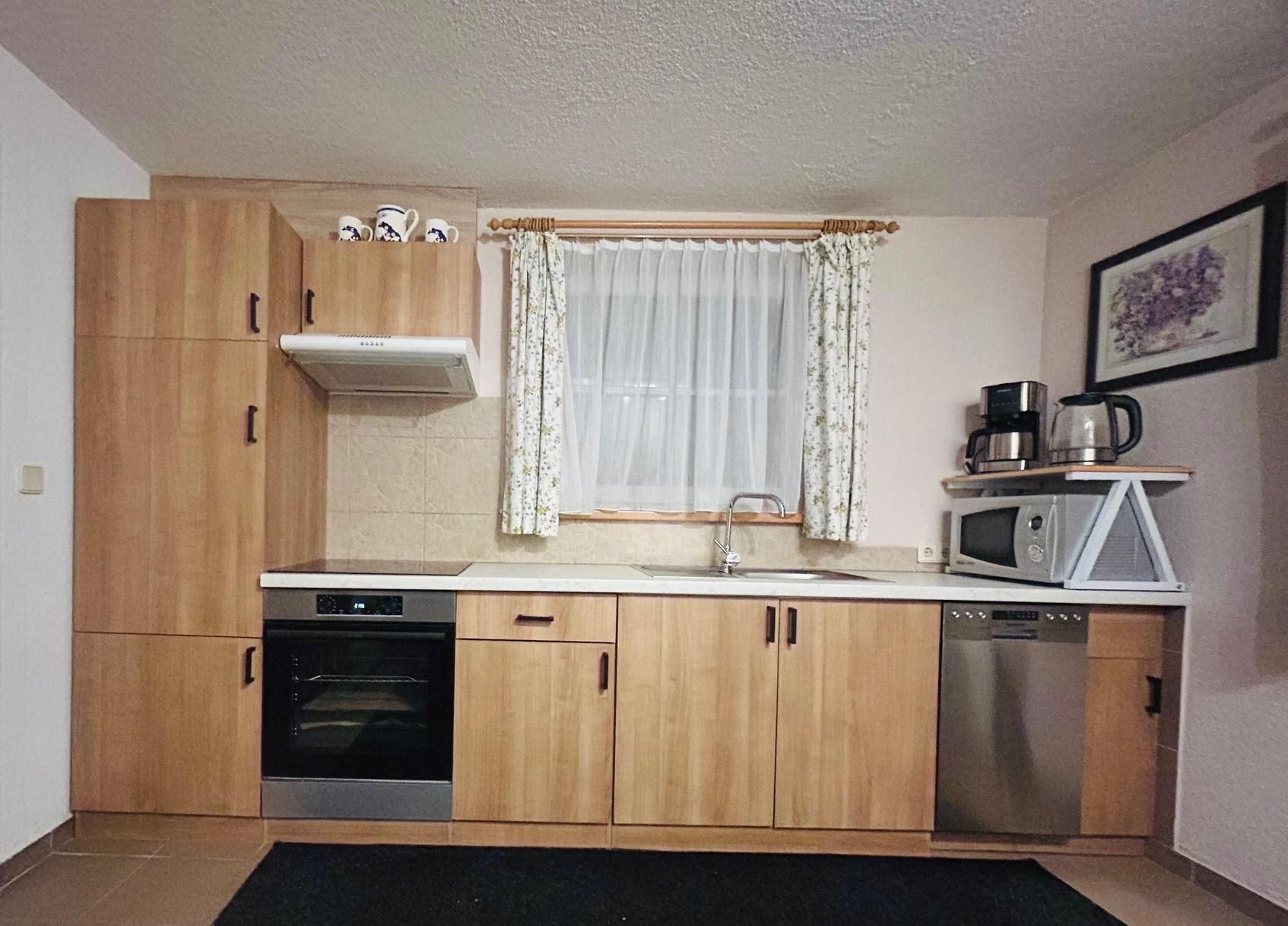 Gemütliche Ferienwohnung (ca. 48 m²) für 2-4 Personen im Erdgeschoß mit eigenem Eingang besteht aus: 1 großem Doppelzimmer und ausziehbarer Schlafcouch für 3. und 4. Person (mit Topperauflage); 1 Badezimmer mit Badewanne, Dusche und WC; 1 vollausgestattete Wohnküche mit Elektroherd, Backrohr, Kühlschrank, Kaffeemaschine, Wasserkocher uvm., Essbereich und Wohnbereich, Sat-TV; von der Wohnung haben Sie direkten Zugang zum möblierten Garten.