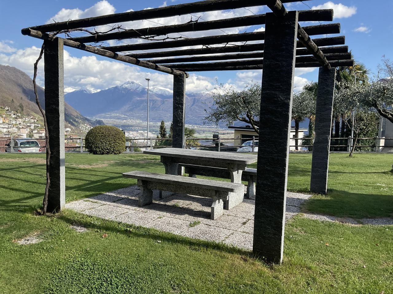 Der Außenbereich lädt mit einem Garten, der zur gemeinschaftlichen Nutzung vorgesehen ist, zum Verweilen in der Natur ein. Die Pergola und der bereitstehende Grill ermöglichen gesellige Stunden unter freiem Himmel. Der perfekte Ort, um in entspannter Atmosphäre die Liebe zur Tessiner Landschaft zu entdecken und gemeinsam kostbare Erinnerungen zu schaffen.