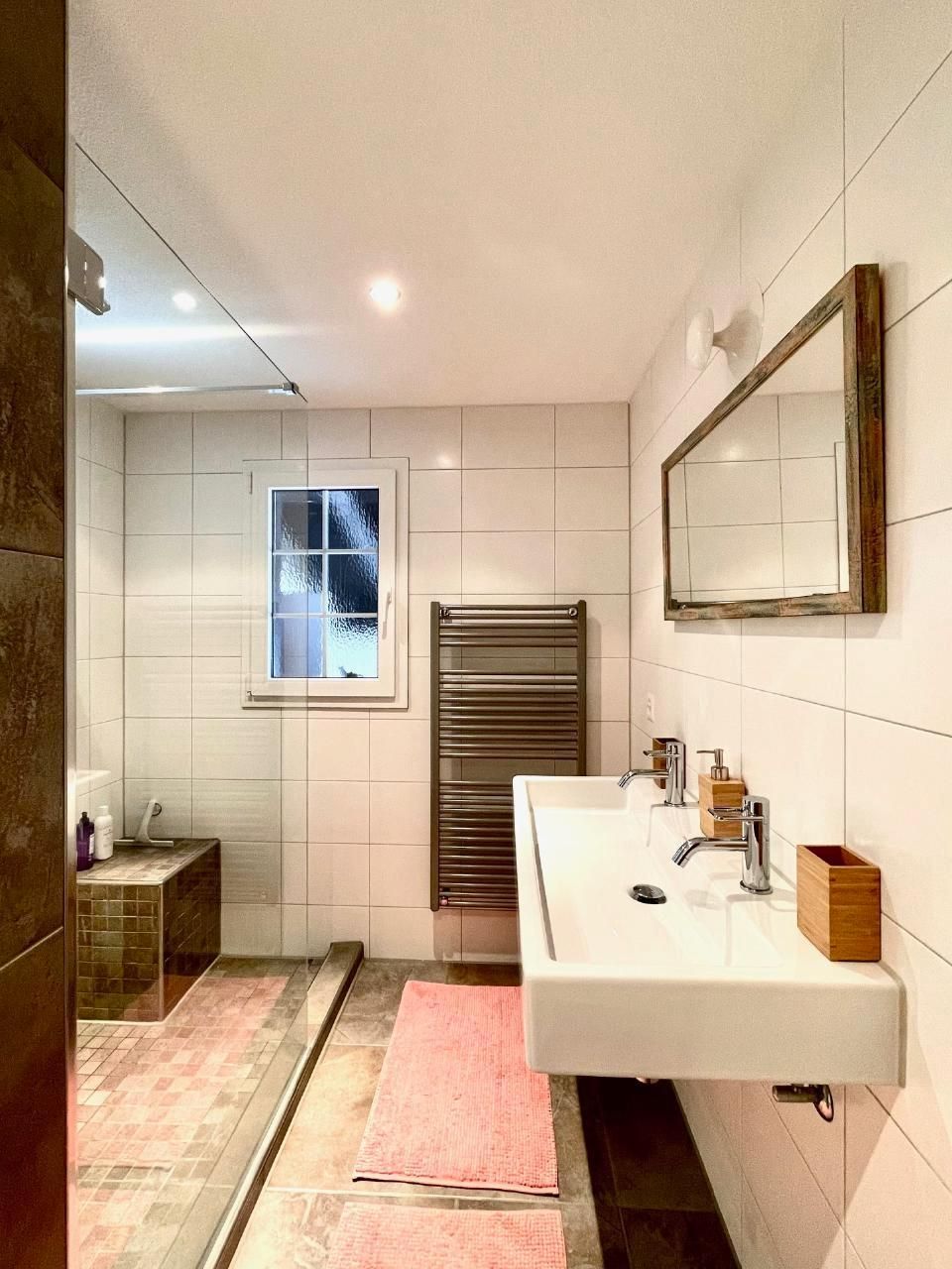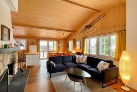 Das Wohnzimmer verfügt über ein grosses Cheminée. Die offene Küche mit Glaskeramik ist mit Geschirrspüler, Backofen, Mikrowelle und einer Nespressomaschine ausgestattet. Das Badezimmer ist mit einer Regendusche, einem Doppellavabo und WC eingerichtet. Für Ihre speziellen Bedürfnisse steht zudem ein separater Ski- und Veloraum bereit, und eine Waschmaschine/Tumbler kann gemeinschaftlich genutzt werden.