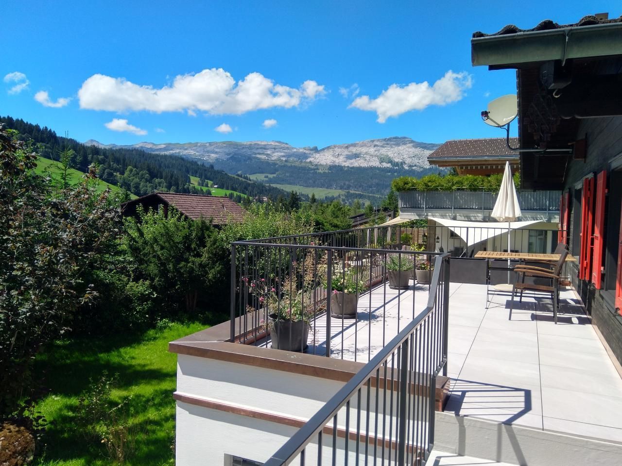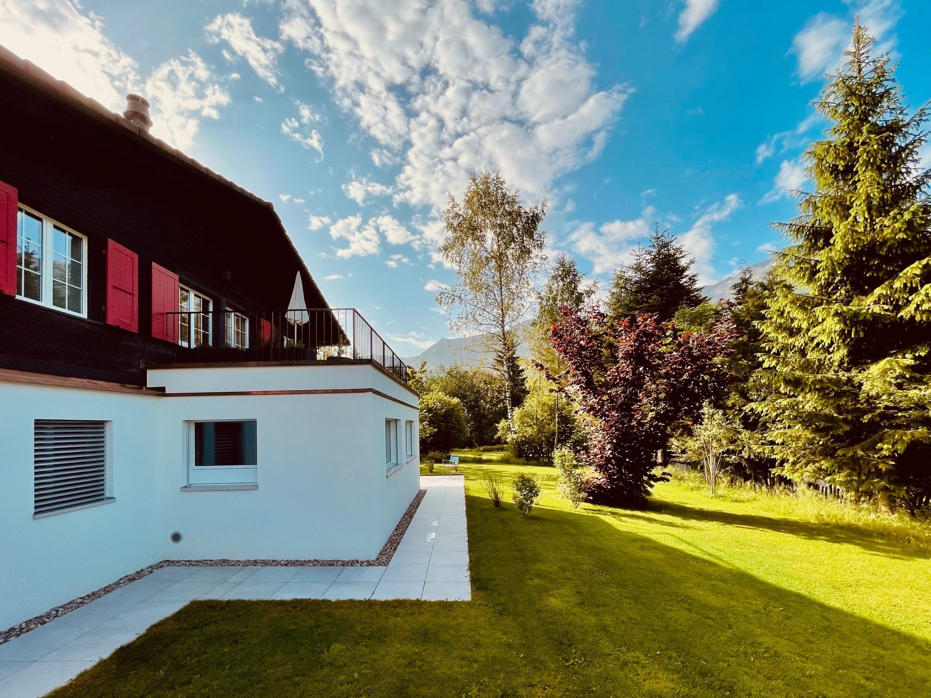 Die ruhig und dennoch zentral gelegene 4-Zimmerwohnung befindet sich an sehr sonniger Lage und hat direkten Zugang zu zwei grosszügigen Terrassen mit wunderbarer Aussicht auf das Brienzer Rothorn und die Schrattenfluh. Der Garten darf mitbenutzt werden.