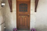 Auch der Außenbereich kann sich sehen lassen: Ein kleiner Tisch und zwei Stühle stehen vor dem Eingang und laden Sie dazu ein, die Ruhe an der frischen Luft zu genießen. Diese idyllische Umgebung ist perfekt, um sich nach einem Tag voller Erkundungen zu entspannen oder einfach nur in der Sonne zu sitzen und zu lesen.