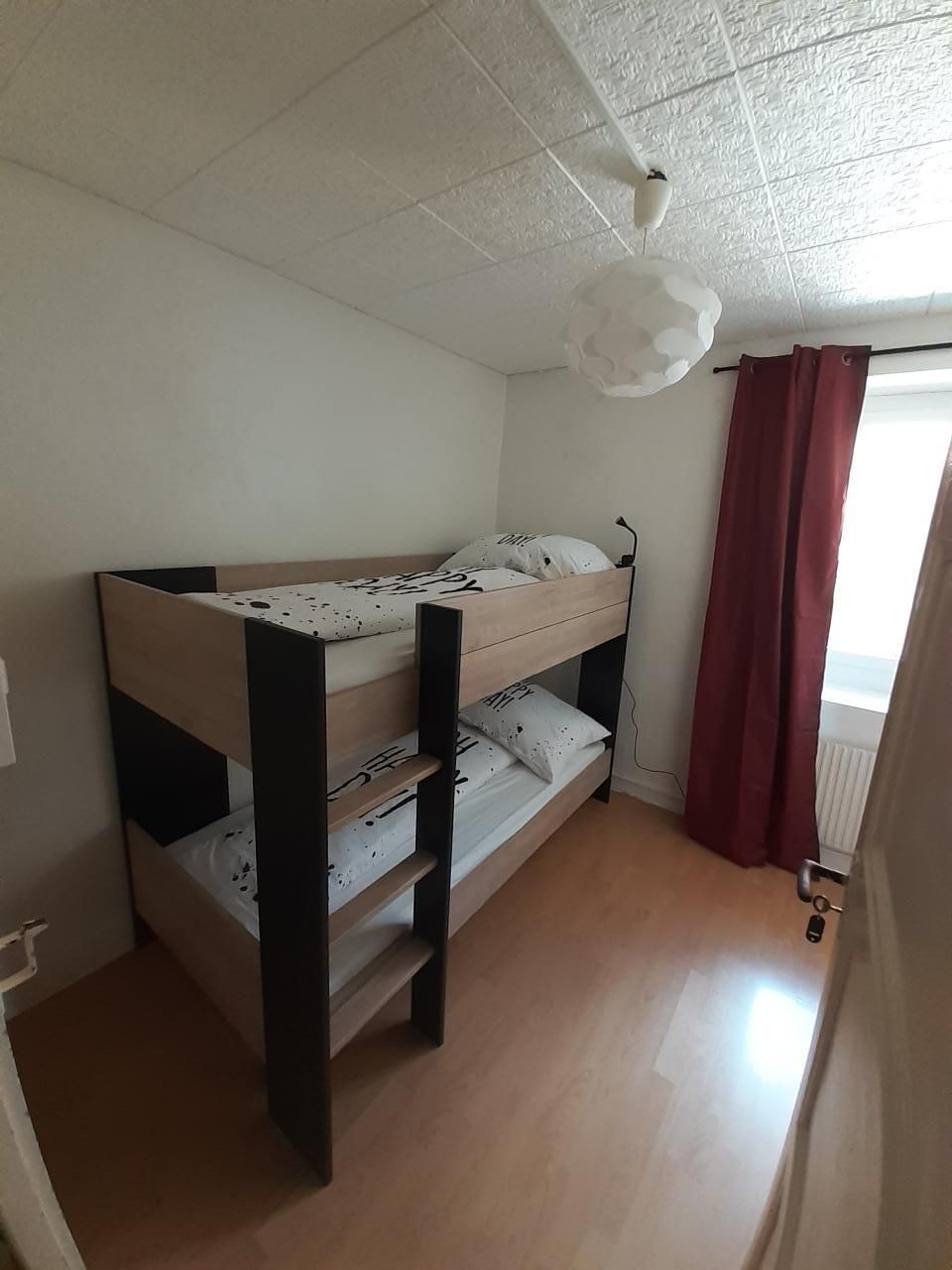 Die Wohnung verfügt im Erdgeschoss über einen Eingangsbereich, der zu einer voll ausgestatteten Küche mit Geschirrspüler, Kühlschrank, Gefrierschrank, Wasserkocher und Nespresso-Kaffeemaschine für einen gemütlichen Morgen führt. Ein Badezimmer mit Dusche, Waschbecken und WC ist für Ihre Bequemlichkeit mit einer Waschmaschine und einem Wäschetrockner ausgestattet. Im ersten Stock, der über eine Treppe erreichbar ist, befindet sich ein großes Wohnzimmer mit Fernseher, einem Einzelbett (90cm) und drei Schlafzimmern mit verschiedenen Schlafmöglichkeiten, darunter ein Doppelbett (140cm), ein Einzelbett (90cm) und ein Etagenbett (90cm). Handtücher und Bettwäsche werden freundlicherweise zur Verfügung gestellt.