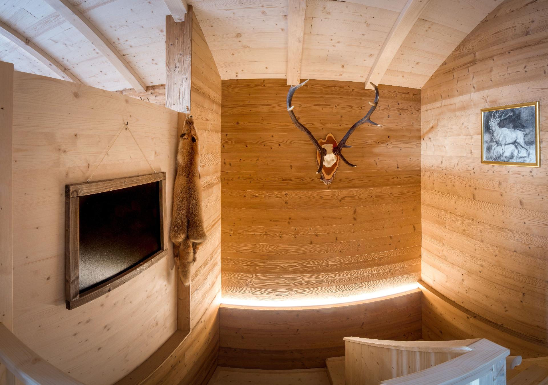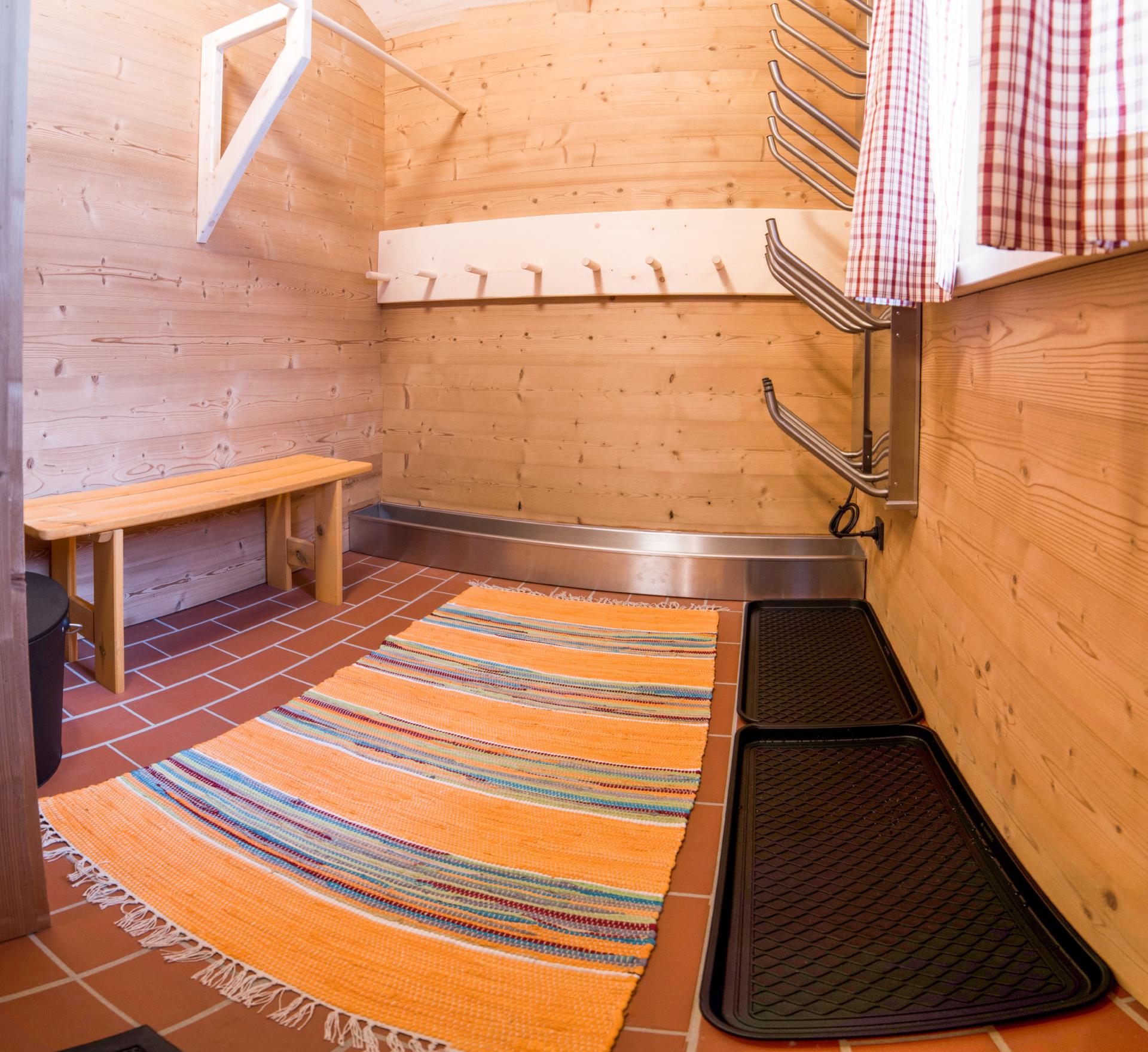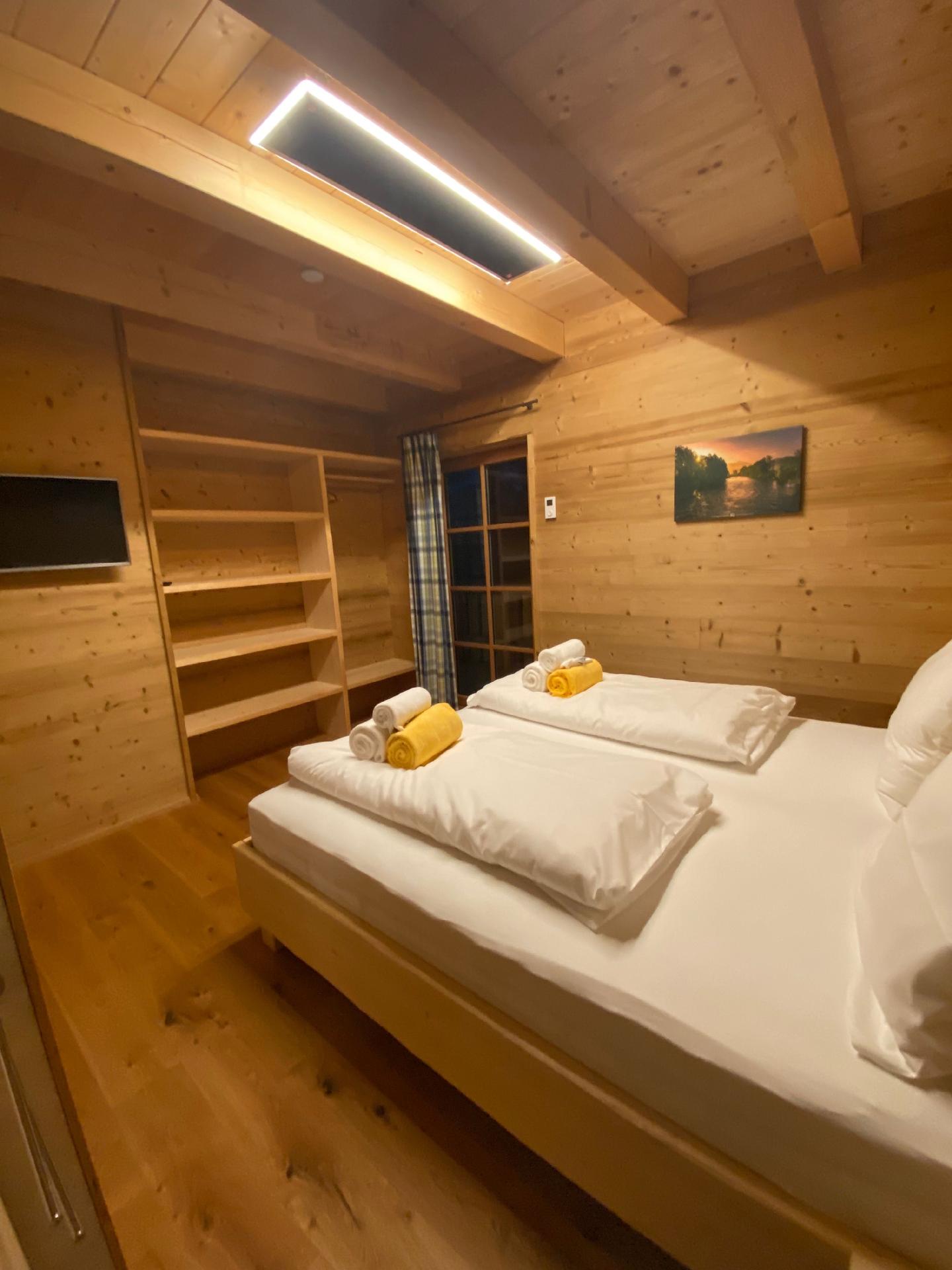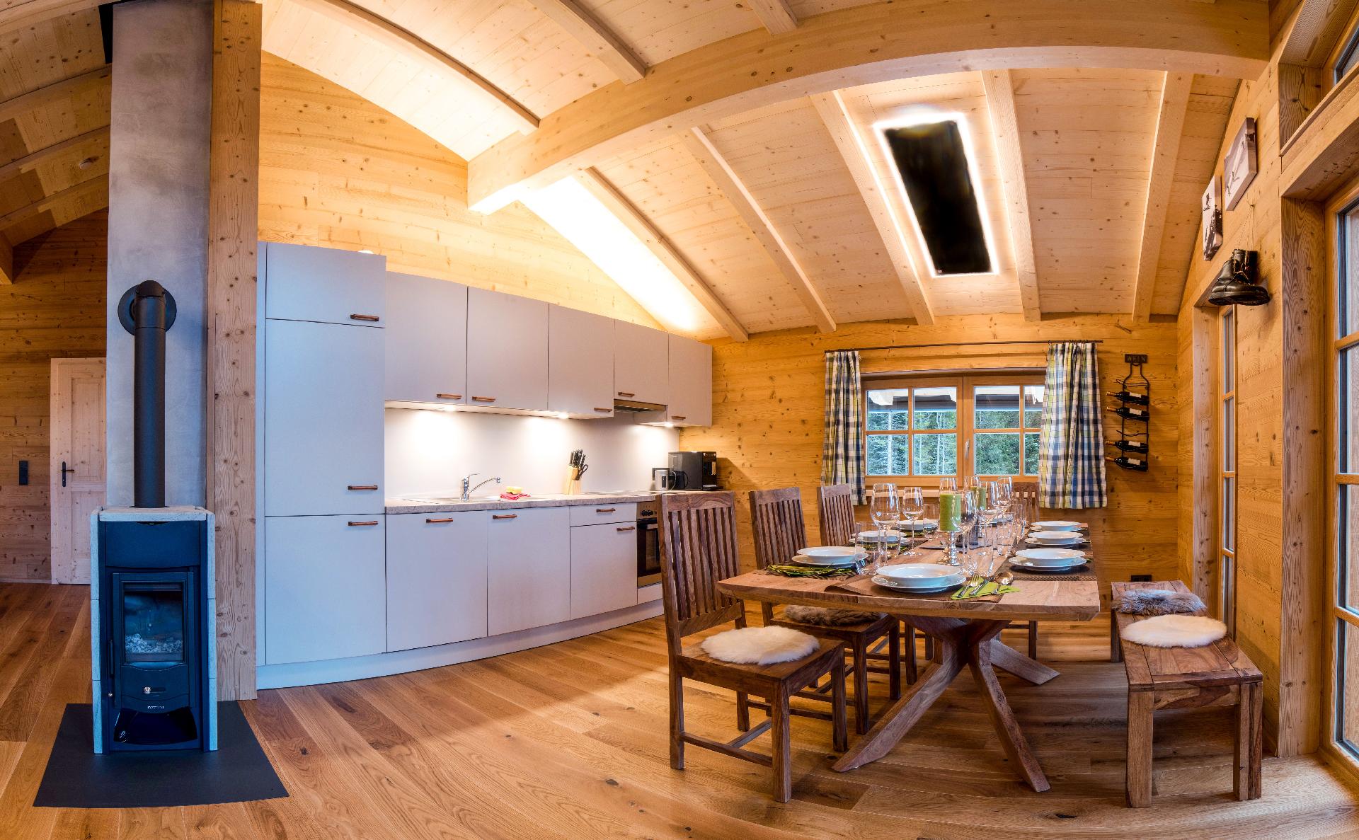 Unsere Jagdhütte verfügt über einen großzügigen Wohn-Essbereich mit Panoramafenster auf die umliegende Bergwelt, eine komplett eingerichtete Küche, einen Kaminofen für kuschelige Wärme, vier Doppelschlafzimmer mit Sat-TV und eigenem kleinen Bad, sowie teilweise kleiner Terrasse, eine Sauna sowie einen Ski- und ttwäsche und Handtücher sind vorhanden. Bademäntel können gegen eine Gebühr gebucht werden.