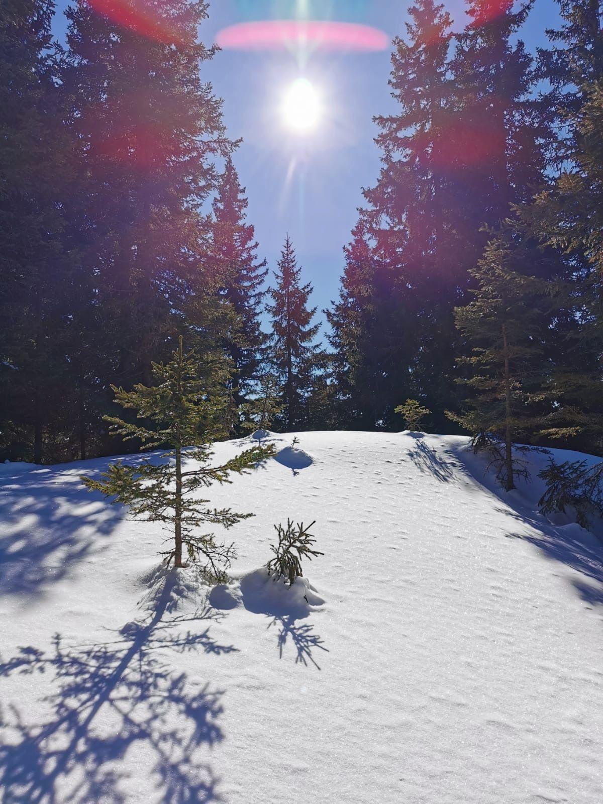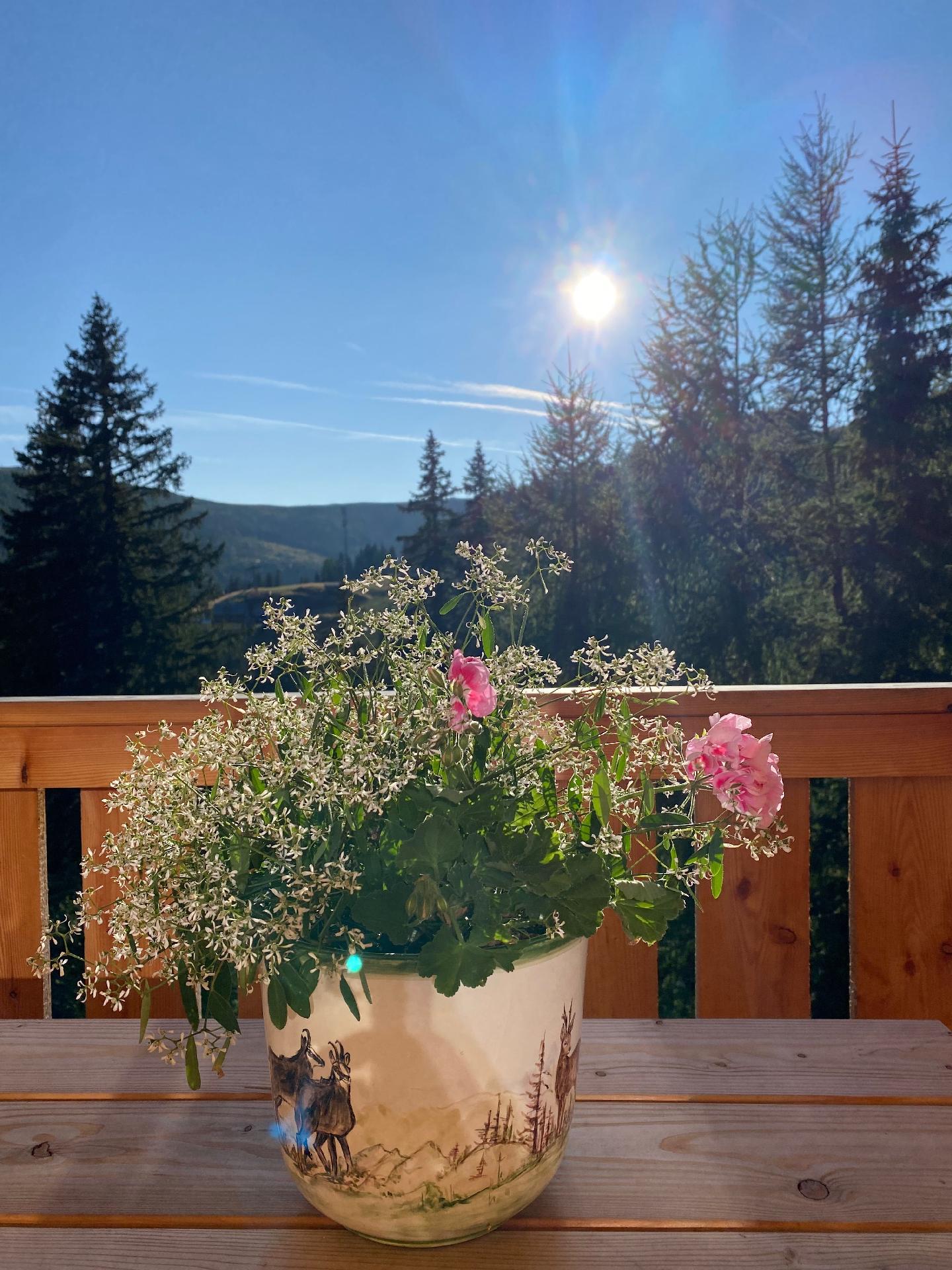 Unsere Jagdhütte befindet sich auf sonniger Hanglage, unweit der Skipiste - etwa 200 m zum nächsten Pisteneinstieg - und ist im Sommer Startpunkt für viele Wanderungen.