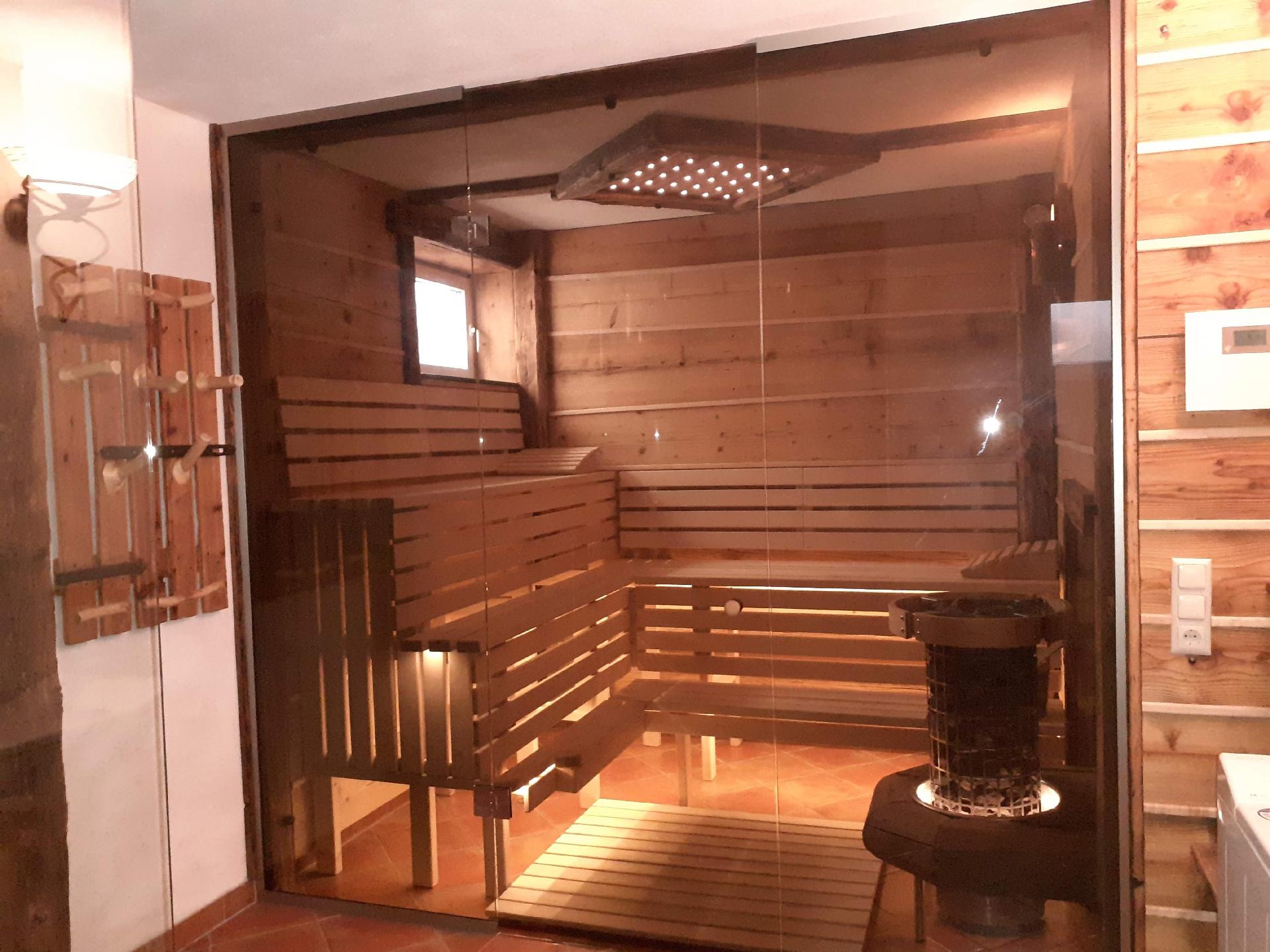 Im Inneren erwartet Sie höchster Komfort vereint mit gemütlicher Atmosphäre. Die perfekt ausgestattete Küche im Erdgeschoss, inklusive Bierzapfanlage, lässt keine Wünsche offen. Die große Sitzecke im offenen Ess- und Wohnbereich lädt zu geselligen Abenden ein, während der SaT TV für Unterhaltung sorgt. Für die Nachtruhe stehen Ihnen ein Schlafzimmer mit Doppelbett und Bad im Erdgeschoss sowie zwei weitere Schlafzimmer mit eigenem TV und ein zusätzliches Bad im Obergeschoss zur Verfügung. Highlight ist der Wellnessbereich im Untergeschoss mit Sauna, Infrarotkabine, Whirlpool, Dusche und separatem WC – perfekt um nach einem aktiven Tag zu entspannen.