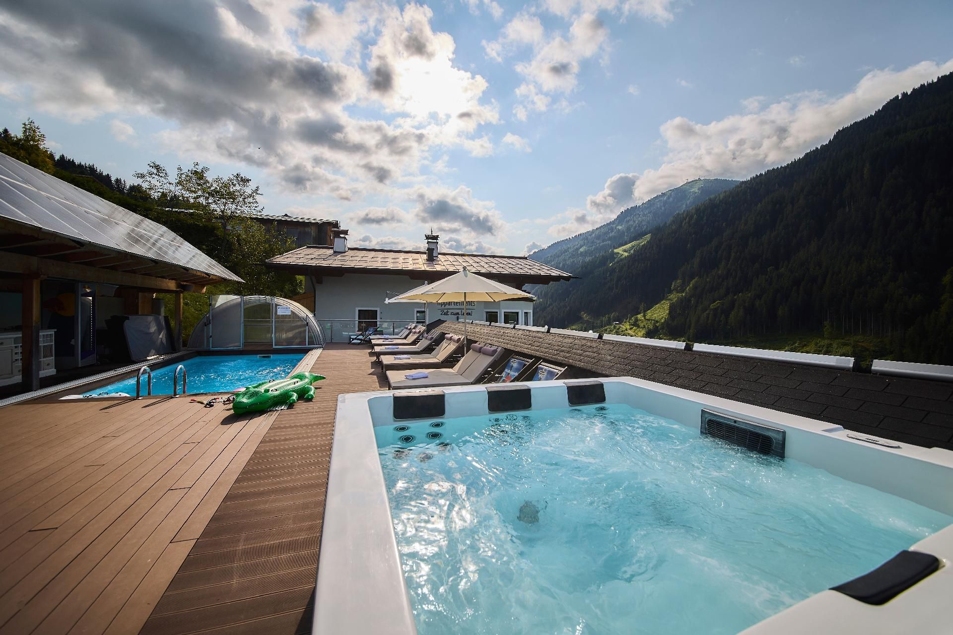Das exklusive Ferienhaus mit Pool in den Alpen überzeugt mit echtem Bergfeeling und einem traumhaften Blick auf das Tal von Saalbach-Hinterglemm. Joker Card inkludiert! Ob Sommer oder Winter - die Boutique Appartements sind der perfekte Ort, um sich Zeit zum Leben zu nehmen. Erlebe zusammen mit deinen Leuten einmalige Tage in unseren modern ausgestatteten Appartements mit Whirlpool auf der Dachterrasse und grandiosen den Bergblick. Hunde sind bei uns auch herzlich willkommen! Die zwei Ferienwohnungen mit gemeinsamen Pooldeck sind auch der perfekte Ort für einen Familienurlaub. Übersichtliches Outdoor-Poolgelände und gemütliche Sitzgelegenheiten laden zu wunderbaren gemeinsamen Stunden ein. Ob eine Runde Ball spielen im Pool oder einfach nur auf den Liegen entspannen, in unserer Swimming Pool Area lässt sich problemlos der Tag verbringen. Unweit der Appartements befindet sich ein wahres Paradies für die ganze Familie – der Talschluss mit all seinen Attraktionen, wie Hochseilgarten, Hängebrücke u.v.m. Von Mai bis Ende Oktober ist die Joker Card im Preis inbegriffen. Diese Karte bietet Ihnen zahlreiche kostenfreie Vorteile und Ermäßigungen, darunter die kostenfreie Nutzung der Seilbahnen und Busse in der Region Im Winter bringt dich der Walleggalm Shuttlebus direkt von den Boutique Appartements kostenlos hoch zum Frühstück auf die Walleggalm bzw. auf die Piste! Von den Appartements führt euch eine Skiroute direkt zur Hochalmbahn und eine eigene Piste zum Haus zurück.