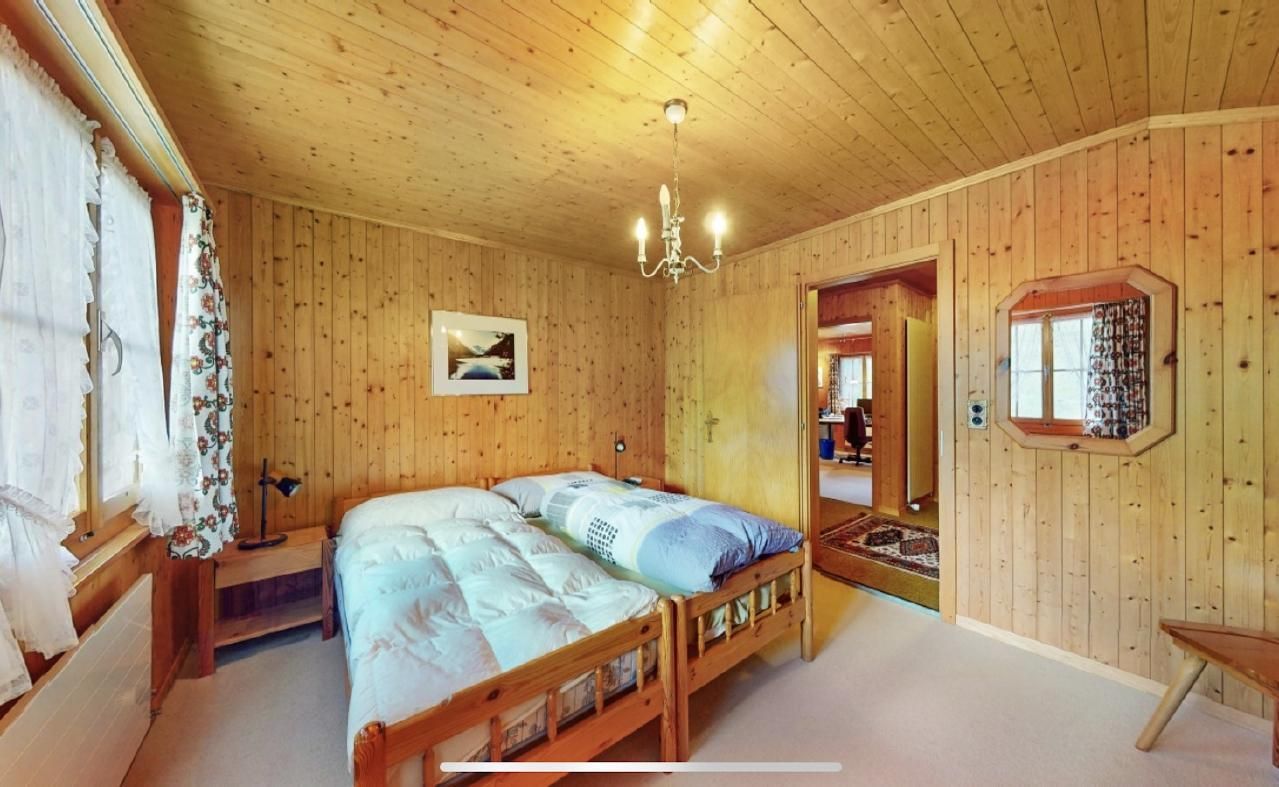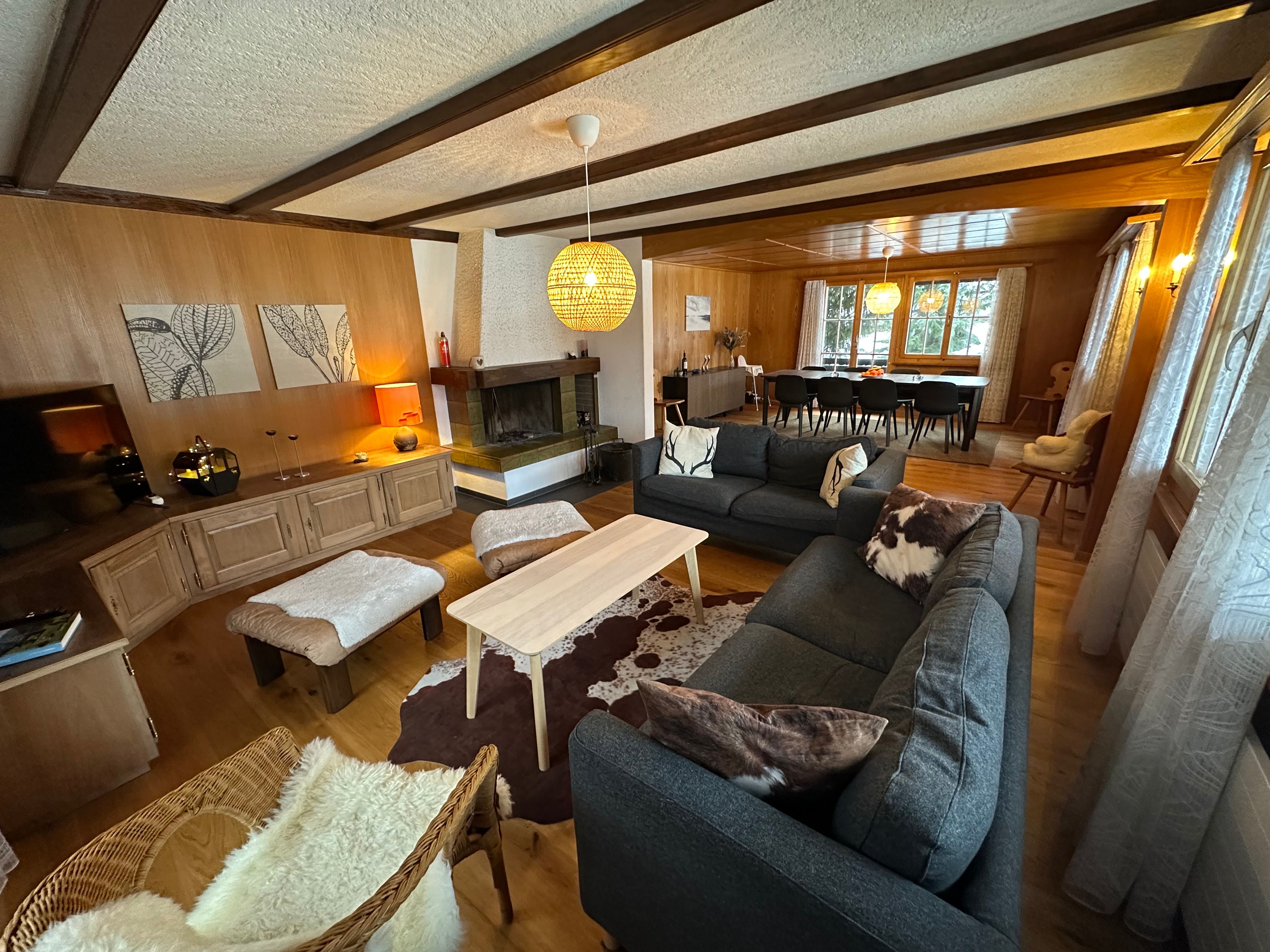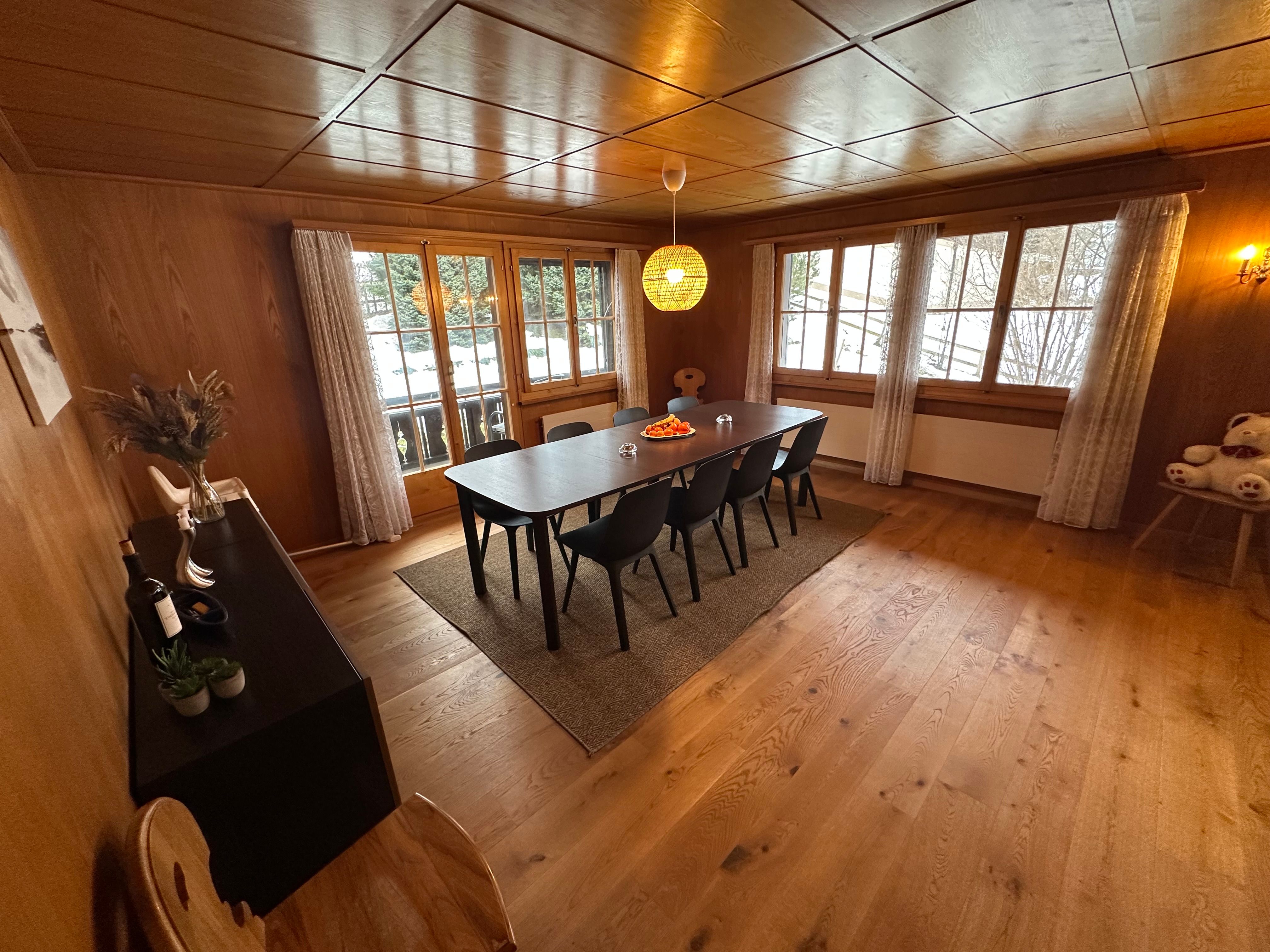 Bringen Sie Ihre ganze Familie mit! In diesem grosszügigen Chalet hat es 4 Eltern-Schlafzimmer für total 8 Erwachsene und 2 kleinere Kinder-Schlafzimmer für total 5 Kinder. Auf zwei Etagen hat es genug Platz für alle! Ein Eltern-Schlafzimmer, die Küche und das Wohnzimmer mit Cheminee sind auf dem Erdgeschoss und somit auch für Leute geeignet, die nicht so gut zu Fuss sind.