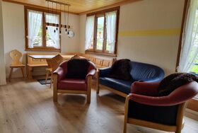 Die im Jahr 2020 renovierte Ferienwohnung befindet sich im 1. Stock des Hauses Graustock. Sie verfügt über ein Schlafzimmer mit zwei Stockbetten (4 Schlafplätze) und ein geräumiges Wohn-/Esszimmer. Im Wohnbereich hat es ein ausziehbares Bettsofa, welches zwei weitere Schlafplätze bietet.