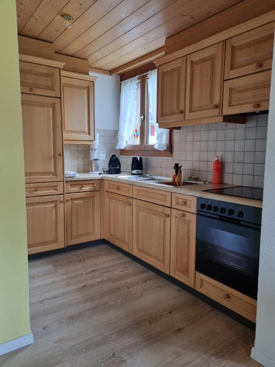 Die gut ausgestattete Küche verfügt über einen Glaskeramik-Herd, Backofen, Kühlschrank, Wasserkocher, Kaffeemaschine, SodaStream, Fondue-Rechaud, sowie Racletteofen mit Tischgrill.