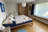 Schlafzimmer mit Doppelbett und Kleiderschrank