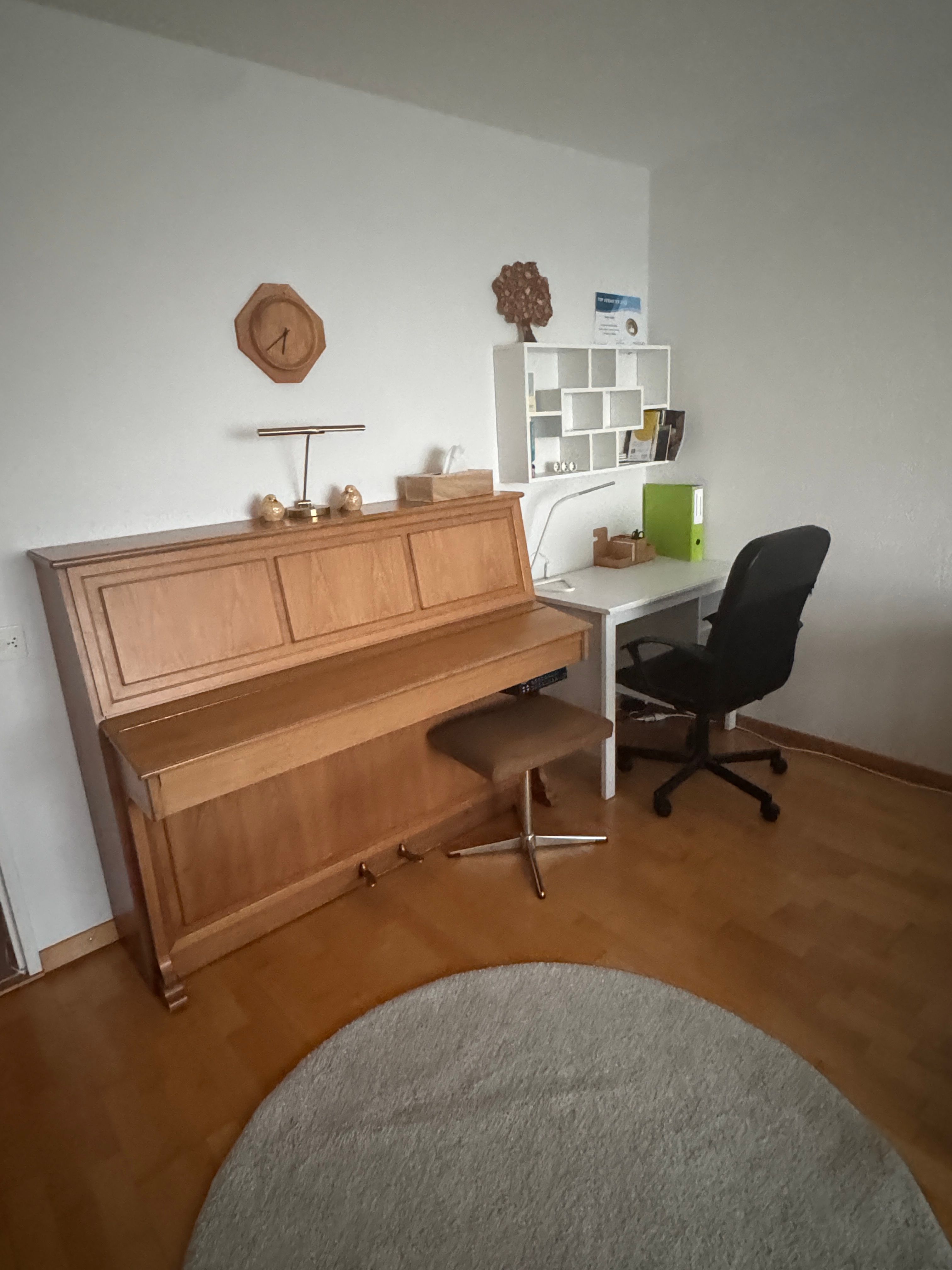 Im Wohnzimmer hat es eine kleine Büroecke. Der Sofa im Wohnzimmer kann als zusätzliche Schlafgelegenheit benutzt werden.