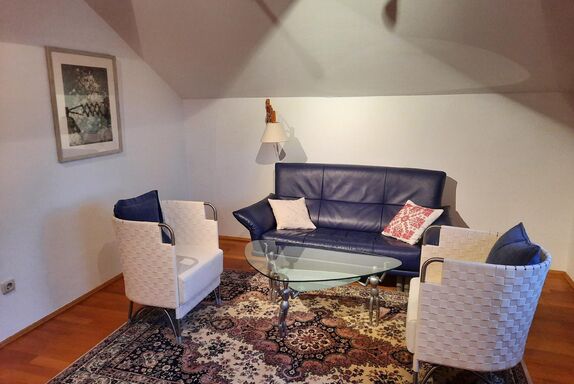 Sehr schöne helle 2 Zimmer Wohnung mit Küche – Essdiele und zwei Balkonen, direkt am Englischen Garten gelegen, ca. 10 Gehminuten von der Altstadt Landsbergs (Hauptplatz) entfernt, mitten im Grünen. 10 Gehminuten zum Bahnhof. Größe ca. 80 m²; DG - 2 OG; 1 Wohnzimmer, 1 Schlafzimmer, Küche, Diele und Essplatz mit Balkon zum Englischen Garten, Bad mit Dusche und Wanne, WC separat, Der Eingang zur Wohnung mit Garderobe und Balkon befindet sich im 1 OG. Direkter Zugang zum Bad im Schlafzimmer (Glastüre); alle Räume sind mit Parkett- bzw. Fliesenböden ausgestattet und haben Fenster. Die komplett ausgestattete Küche verfügt über einen Herd (Umluft und Ober- bzw. Unterhitze) mit Induktionskochfeld, Geschirrspülmaschine und Kühlschrank mit Gefrierfach. Bettwäsche, Handtücher und Geschirrtücher stehen zur Verfügung. Belegung max. 2 Personen; Mindestaufenthalt 4 Nächte. Bestens geeignet für Urlaubs- und Feriengäste, Firmen und Radl-Touristen.