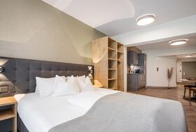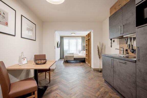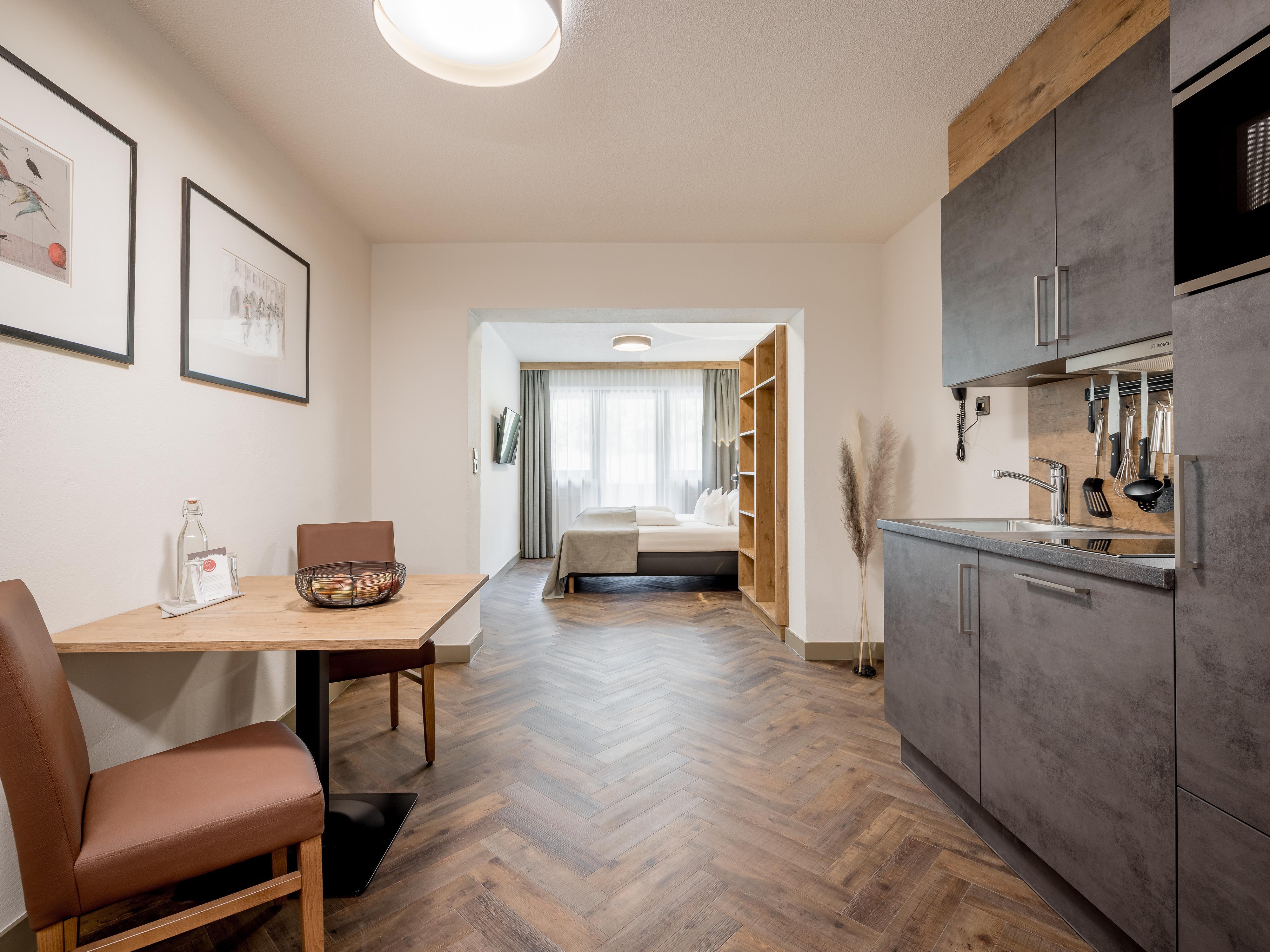 Um dem stetig wachsenden Markt der Serviced Appartements entgegenzukommen, gehen wir als Traditionshaus einen neuen Weg: weg vom klassischen Hotelbetrieb, hin zu modernen Wohlfühlzimmern mit integrierter Kitchenette. Es wartet Sie: höchster Wohnkomfort, exklusive Möbel, harmonische Farbgestaltung, modernes Design, hochwertige Materialien und jeder Menge Regionalität, was Holz- und Stilfragen betrifft. Unsere neuen Traumzimmer können Sie mit oder ohne Frühstück buchen. Für Ihr Abendessen servieren wir auch gerne einen Tisch in unserem À-la-carte-Restaurant. Genießen Sie unvergessliche Stunden im Wellnessbereich mit Schwimmband und genügend Raum zum Entspannen und Wohlfühlen.