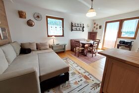 Im Außenbereich lädt die Möglichkeit zur Benutzung eines Skiraums zu unkomplizierten Skitagen ein. Die spezielle Lage dieser Wohnung erlaubt es Ihnen, binnen Minuten sowohl die umliegenden Naturwunder als auch die infrastrukturellen Annehmlichkeiten des Ortes zu genießen.