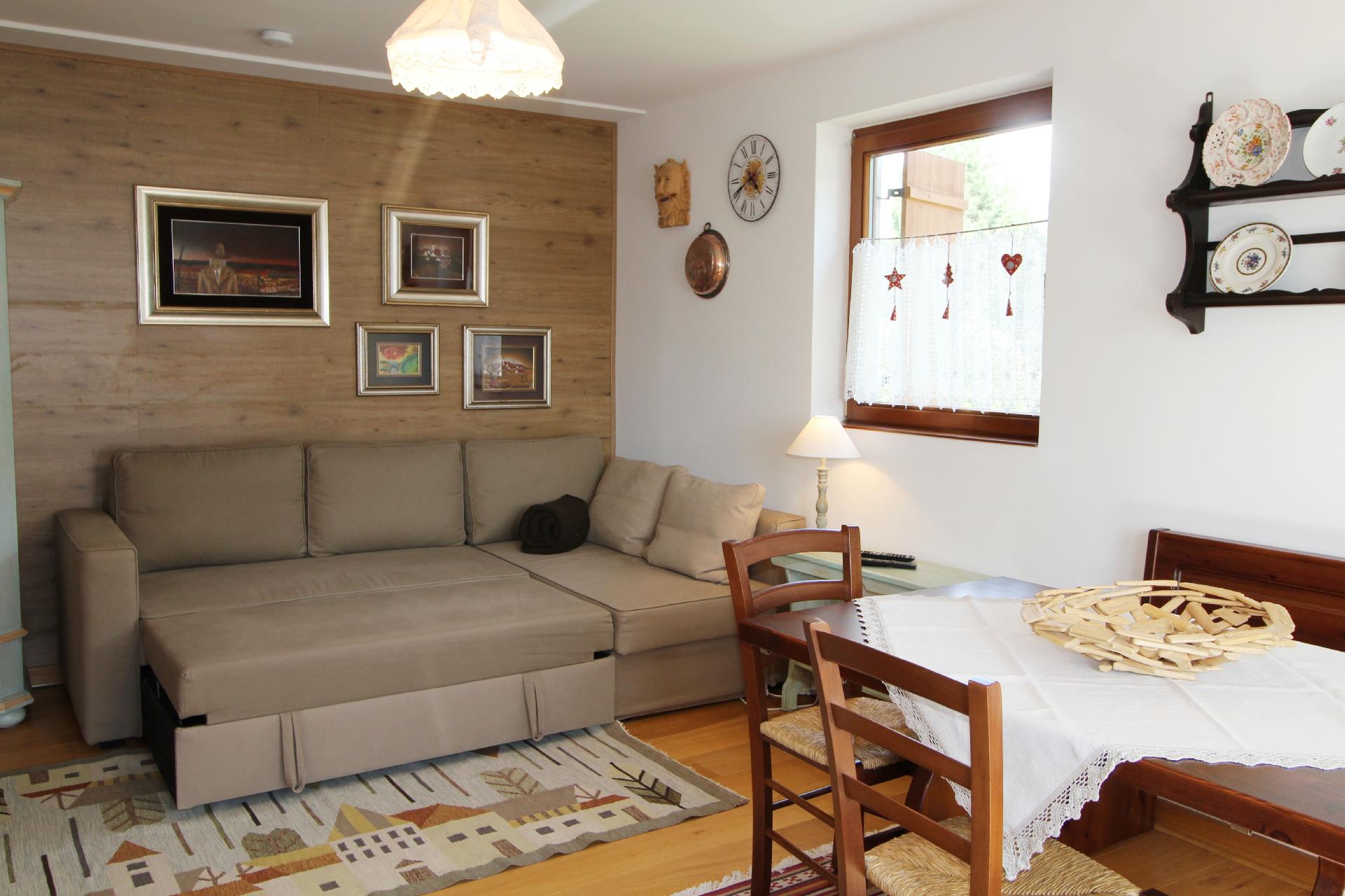 In der lichtdurchfluteten Wohnung werden Sie von einer warmen und einladenden Atmosphäre empfangen. Sie verfügt über ein helles Wohnzimmer mit integrierter Küche, einem gemütlichen Esstisch, einer Schlafcouch für entspannte Abende und einem Balkon für sonnige Morgenstunden. Das Schlafzimmer mit einem komfortablen Doppelbett verspricht erholsame Nächte, während das Badezimmer mit Dusche für die nötige Erfrischung sorgt. Zusätzlich bieten die zwei Außenparkplätze Komfort für Ihre Anreise, und mit kostenlosem, unlimitiertem WLAN bleiben Sie stets verbunden.