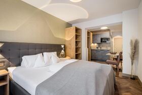 Um dem stetig wachsenden Markt der Serviced Appartements entgegenzukommen, gehen wir als Traditionshaus einen neuen Weg: weg vom klassischen Hotelbetrieb, hin zu modernen Wohlfühlzimmern mit integrierter Kitchenette. Es wartet Sie: höchster Wohnkomfort, exklusive Möbel, harmonische Farbgestaltung, modernes Design, hochwertige Materialien und jeder Menge Regionalität, was Holz- und Stilfragen betrifft. Unsere neuen Traumzimmer können Sie mit oder ohne Frühstück buchen. Für Ihr Abendessen servieren wir auch gerne einen Tisch in unserem À-la-carte-Restaurant. Genießen Sie unvergessliche Stunden im Wellnessbereich mit Schwimmband und genügend Raum zum Entspannen und Wohlfühlen.