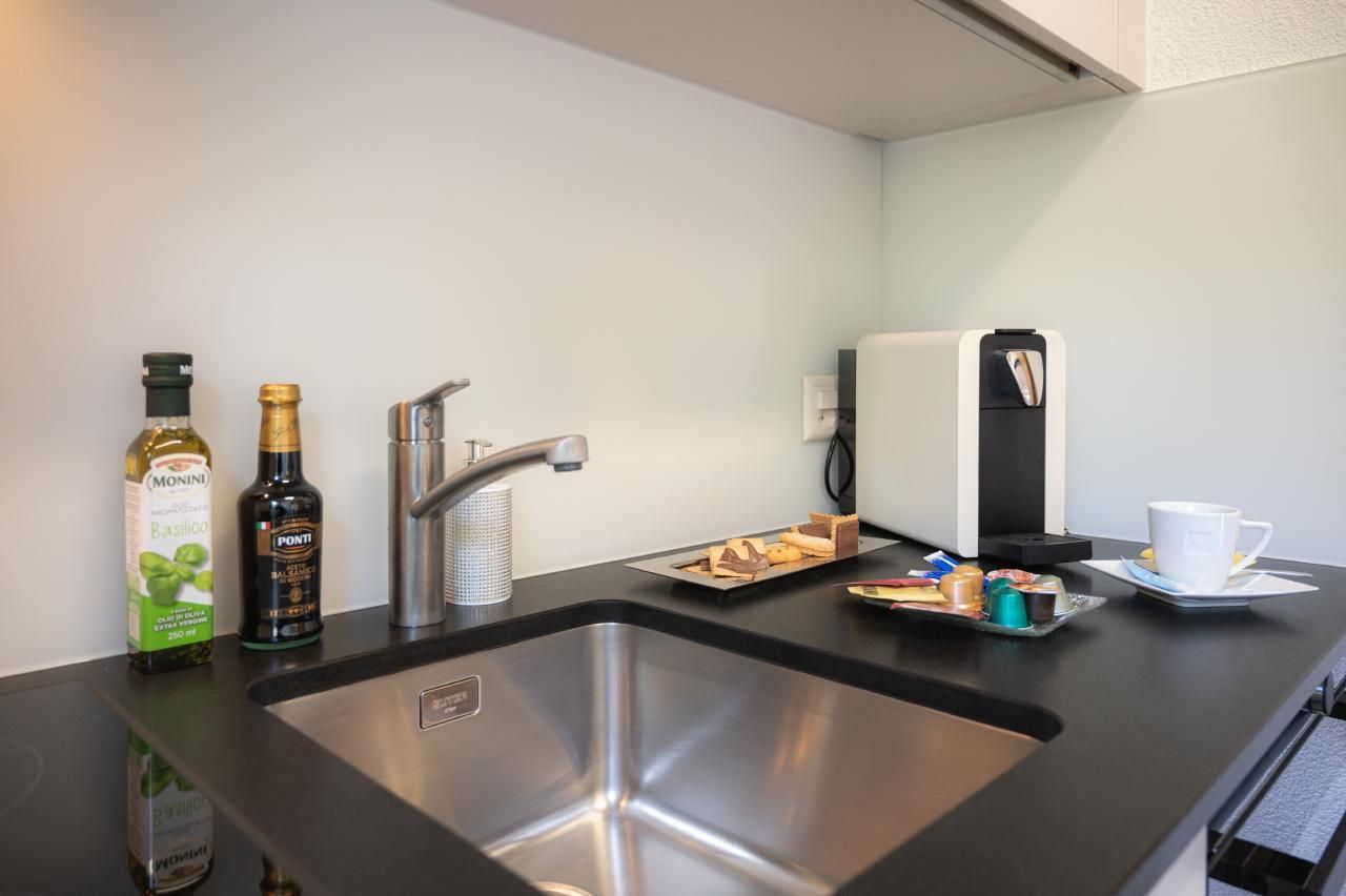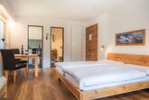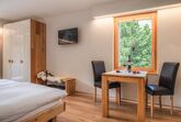 Innen bietet das 32 m² große Studio alles, was Sie für einen unbeschwerten Aufenthalt benötigen. Es verfügt über ein großzügig geschnittenes Wohnschlafzimmer mit einem bequemen Doppelbett, einer gemütlichen Sitzgruppe, und einem Esstisch. Technische Annehmlichkeiten wie ein Flachbildschirm, WLAN sowie ein Radio mit CD-Player sorgen für Unterhaltung und Komfort. Eine separate Küche mit Backofen, Kapselkaffeemaschine, Geschirrspüler und weiteren modernen Geräten lädt dazu ein, kulinarische Genüsse selbst zu zaubern. Zusätzlich zu den Annehmlichkeiten im Inneren steht Ihnen ein Badezimmer mit WC und Haartrockner zur Verfügung.