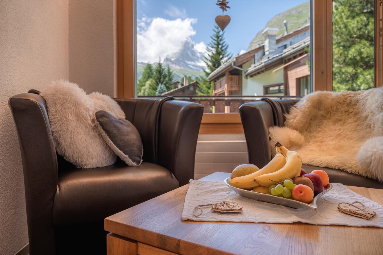 Entdecken Sie das charmante Boutique Studio Süd, die perfekte Ferienunterkunft für 1 bis 2 Personen in Zermatt, im Herzen des Kanton Wallis. Mit seiner idyllischen Lage und der harmonischen Ausstattung bietet dieses Studio den idealen Rückzugsort für Paare, die die atemberaubende Bergwelt erkunden möchten. Das besondere Highlight: Vom Wohnbereich und dem Balkon aus genießen Sie einen einzigartigen Blick auf das majestätische Matterhorn – ein Anblick, den Sie so schnell nicht vergessen werden.