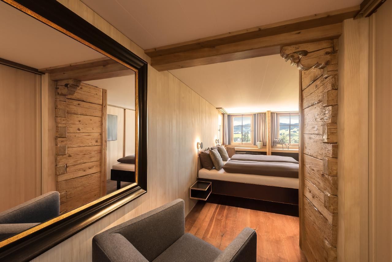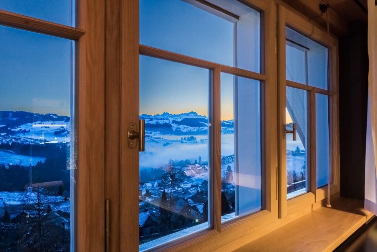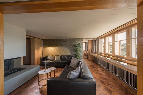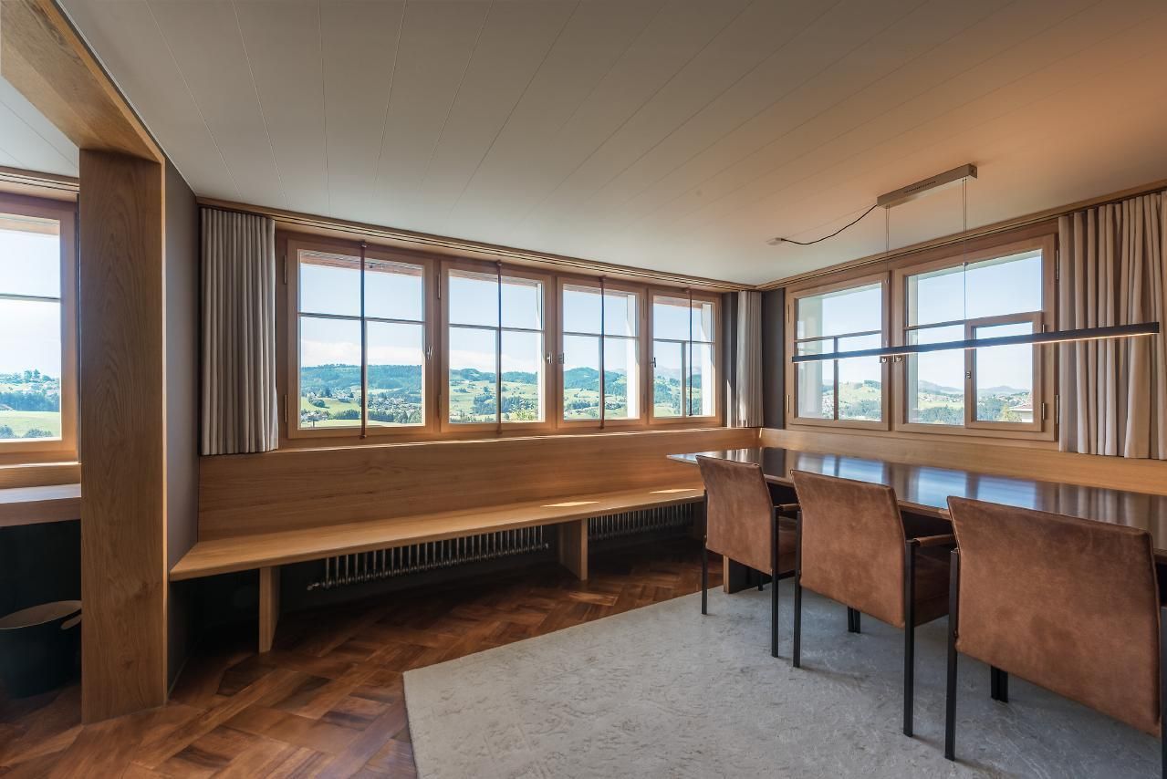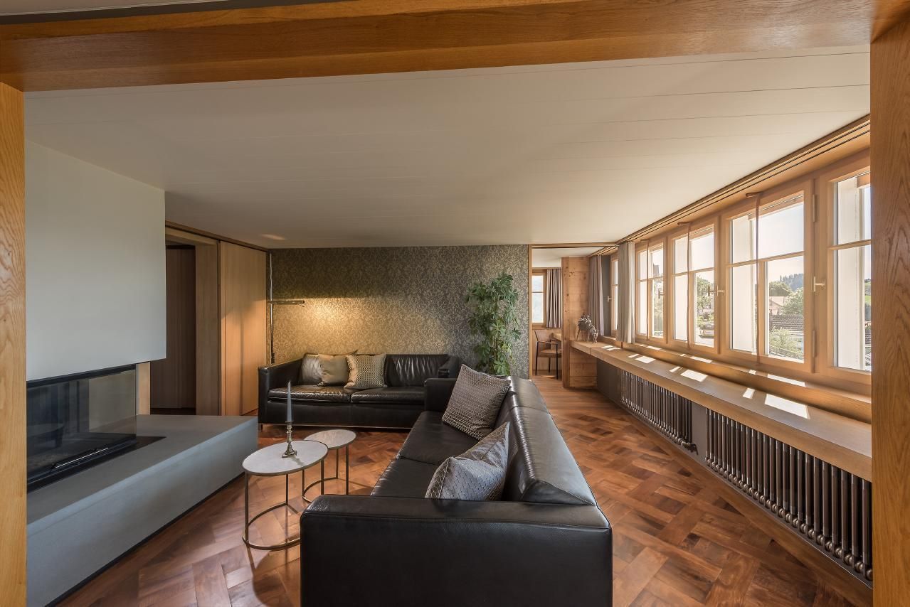 Hier übernachten, mit einzigartigem Blick übers Appenzellerland bis hin zum Säntis, ist zu allen Jahreszeiten ein Erlebnis.Im stilvoll renovierten, denkmalgeschützten Haus am historischen Dorfplatz von Rehetobel, wird alte Bausubstanz mit Modernität verbunden. Das fünfstöckige, stattliche Haus hat in seinen 230 Jahren mehreren Zwecken gedient. Wo jetzt ein hübsches Beizli, das «Gasthaus Dorf5» mit wunderschönem Garten, zum Verweilen einlädt, war früher das Postbüro von Rehetobel. In den oberen Stockwerken, die als Telegrafenamt und Geschäftsräume dienten, befinden sich heute drei Wohnungen mit hohem Ausbaustandard.Die grosszügige, lichtdurchflutete Wohnung bietet einen 180 Grad Fernblick, einen schönen Balkon und einen grosszügigen Wohnraum mit Cheminée. Bad und Schlafzimmer mit Ankleide und die offene Küche weisen einen hohen Einrichtungsstandard auf. Die natürliche Bausubstanz mit historischen Parkettböden und ausgesuchten Materialien sind auf einem hohen ästhetischen Niveau. Auch die technische Ausstattung und das besondere Lichtkonzept lassen keine Wünsche offen.Von der zentralen Lage im Appenzeller Vorderland aus lassen sich das Alpsteingebiet, die nahegelegene Bodenseeregion und die äusserst sehenswerte Stadt St.Gallen ideal erkunden. Die Wohnung bietet für zwei Personen sehr viel Raum, und es finden sich viele gemütliche Plätzchen zum Verweilen. Kochen in der modern eingerichteten Küche macht Freude - oder lassen Sie sich lieber im Beizli unten verwöhnen?Für mehr als zwei personen Personen empfehlen wir die Wohnung Kronbergblick oder Säntispanorama im gleichen Haus.