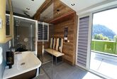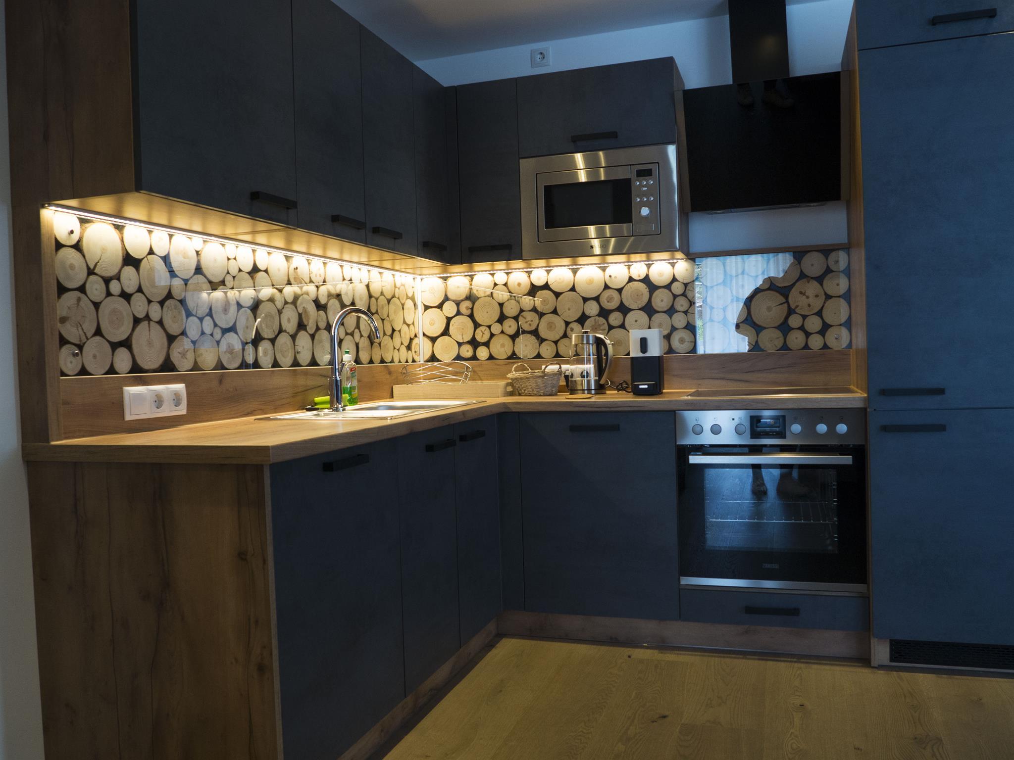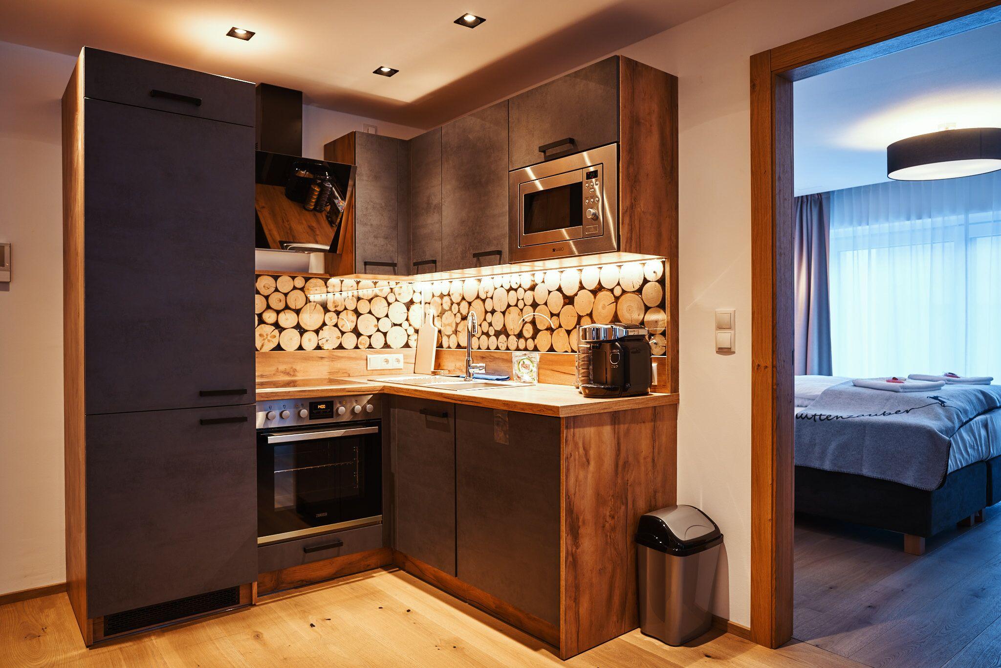 Modernes Appartement mit ca. 95 m² bestehend aus: 2 getrennten Schlafzimmern, Wohnküche mit Sofa (ausziehbar für 5. und 6. Person) und Sat-TV, Essbereich; Küchenzeile komplett ausgestattet mit Backofen, Elektroherd, Spülmaschine, Mikrowelle, uvm.; 1 Badezimmer mit Dusche und Infrarotsessel; 1 separates WC