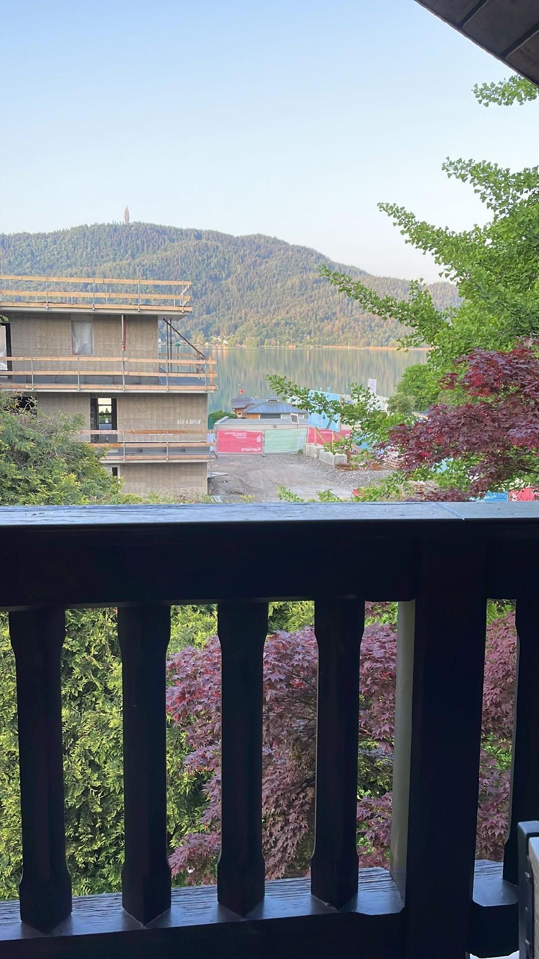 Das Äußere dieser charmanten Ferienwohnung besticht durch seinen einladenden Balkon, der einen direkten Blick auf die wunderschöne Umgebung und partiell den Wörthersee freigibt. Hier können Sie die morgendliche Frische oder abendliche Ruhe genießen und den Alltagsstress hinter sich lassen. Der perfekte Ort, um bei einem Buch oder einem Glas Wein zu entspannen.