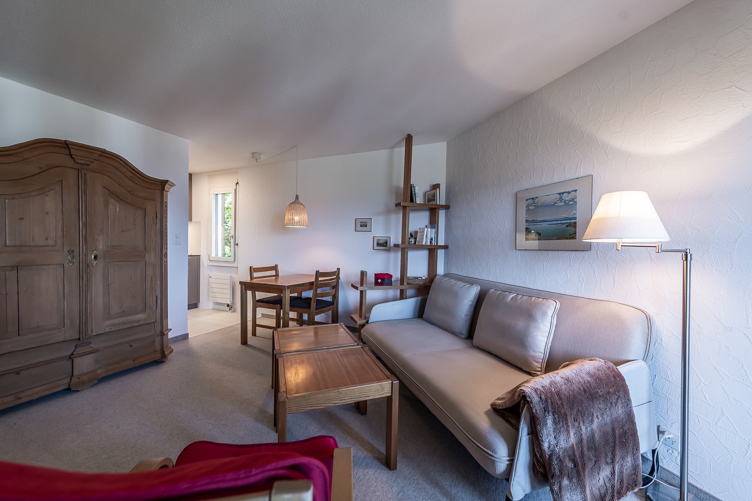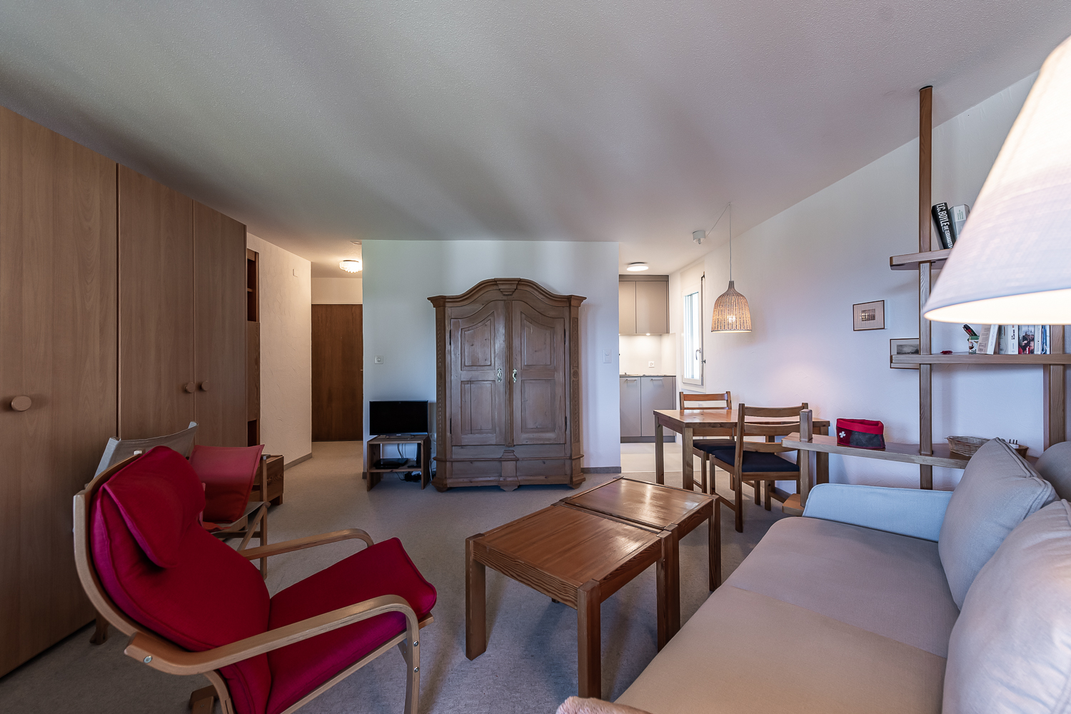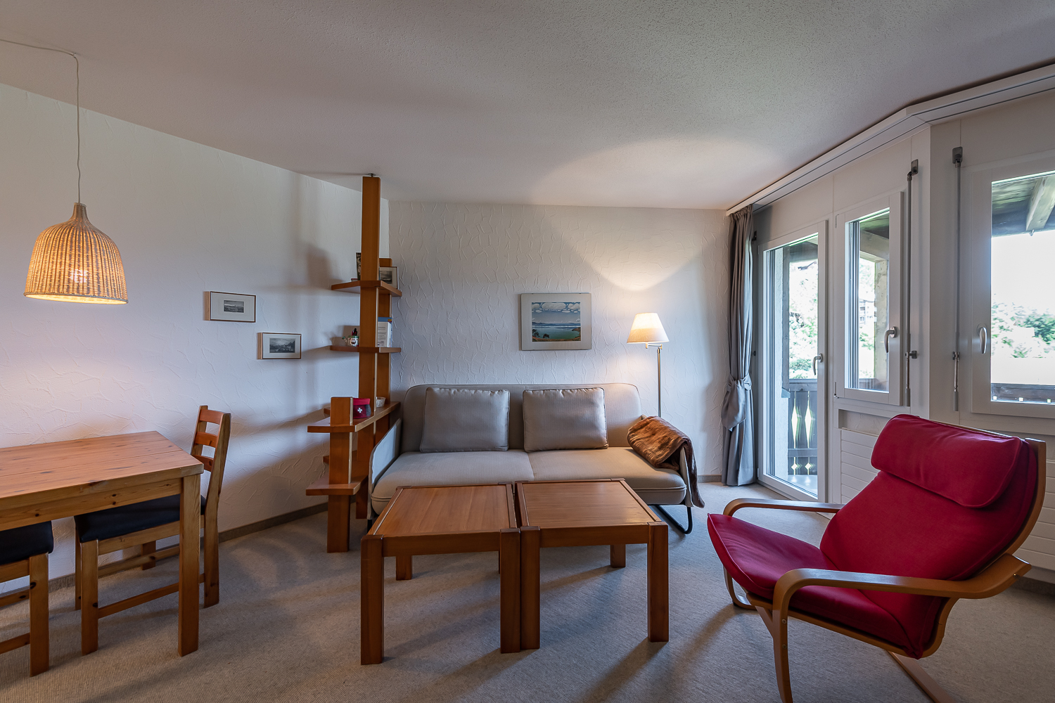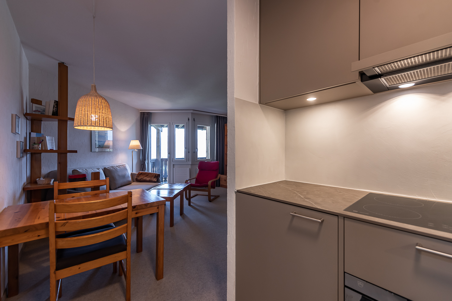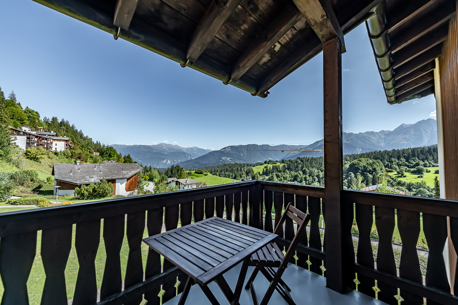 Die Ferienwohnung ist ideal für eine Auszeit zu zweit geeignet, auf Anfrage auch mit einem Kind. Sie verfügt über ein sehr bequemes Doppel-Schrankbett, einen Esstisch für 3 Personen, einen Sofabereich und eine offene Küche. Ein TV-Gerät mit Online-Optionen wie Netflix und WLAN stehen zu Ihrer Verfügung.Die neu sanierte, großzügige Küche ist voll ausgestattet und verfügt über einen Induktionsherd, Backofen, Spülmaschine, Raclette-Ofen, Fondue-Set und weitere Küchengeräte. Vom Wohnraum aus gelangen Sie auf den überdachten, geräumigen und sonnigen Balkon mit wunderschönem Bergpanorama.Das Apartment verfügt über ein neu saniertes Bad mit begehbarer Dusche, Regenbrause, Designer-Waschbecken, Toilette und Handtuchheizkörper. Im Haus befinden sich eine Waschküche mit Waschmaschine und Trockner zur allgemeinen Benutzung sowie ein Skikeller.