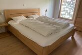 Ein grosses Schlafzimmer mit Doppelbett, ein grosses Schlafzimmer mit Doppelbett und ein Einzelbett, das zu zwei Betten ausgezogen werden kann. Beide Schlafzimmern sind mit Kleiderschrank und Kommoden ausgestattet. Bettwäsche vorhanden und im Preis inbegriffen. Wohnzimmer: