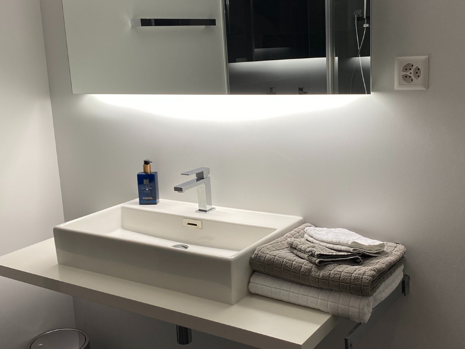 Perfekt ausgestattete offene Küche mit Induktionskochfeldern, Geschirrspüler, Backofen, Nespresso (Kapseln selber mitbringen) und Filterkaffeemaschine. Küchenwäsche vorhanden und im Preis inbegriffen. Badezimmer: