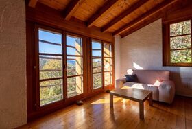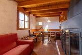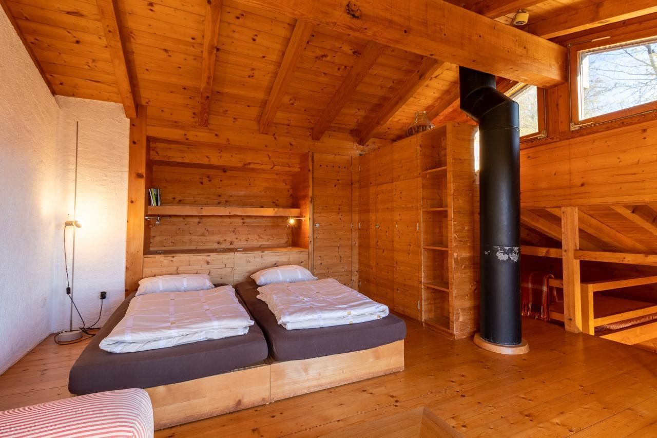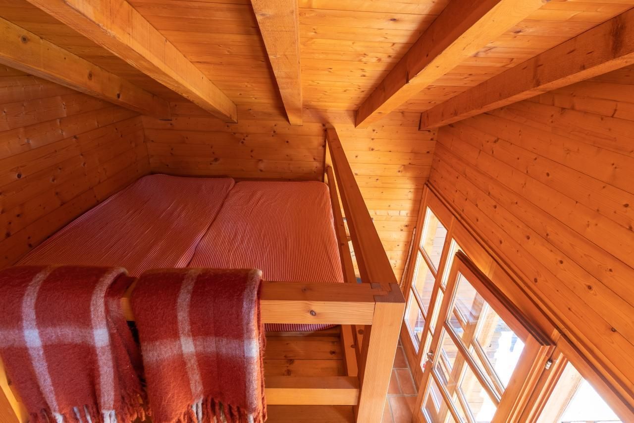 Das Ferienhaus überzeugt durch seine gemütliche Innenausstattung mit ca. 45 Quadratmetern Wohnfläche, die nach Süden ausgerichtet ist. Das Wohnzimmer mit integrierter Küche verfügt über einen Elektroherd und bietet zugleich Zugang zu einer offenen Galerie, auf der sich zwei weitere Betten befinden. Ein separates Schlafzimmer mit einem Traumausblick lässt Sie jeden Morgen mit einem Lächeln erwachen. Das Badezimmer ist praktisch mit WC und Dusche ausgestattet, komplettiert wird das Interieur durch ein Warm-Luft-Cheminée und ein Sofabett im Schlafzimmer für maximalen Komfort.