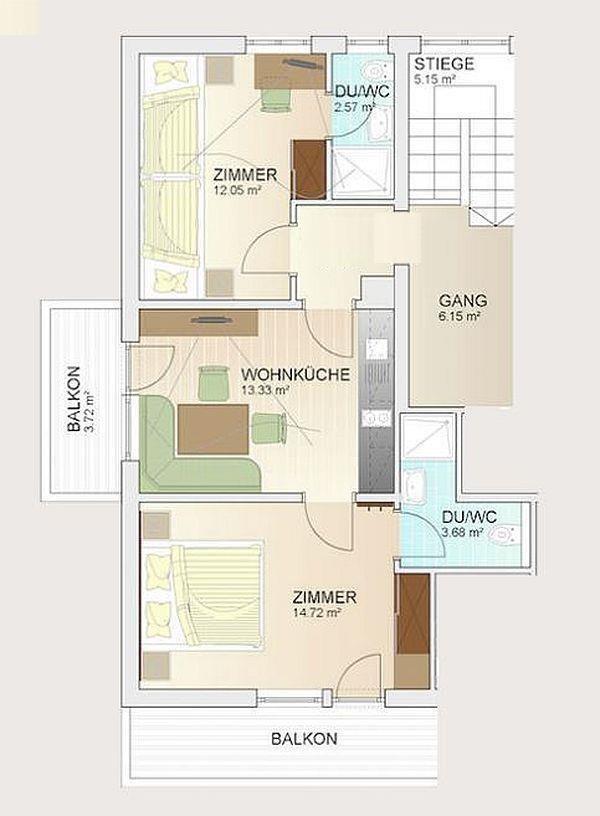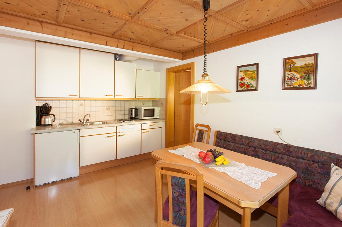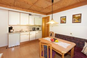 Appartement mit TRADITIONELLEM WOHNKOMFORT (ca. 50 m²): 1 Zweibettzimmer mit TV und Badezimmer mit Dusche/WC und Föhn, 1 Doppelzimmer mit TV und Badezimmer mit Dusche/WC und Föhn, Wohnküche mit gemütlicher Sitzecke und Kabel-TV, voll ausgestattete Küchenzeile mit 2-Plattenherd, Toaster, Wasserkocher, Kaffeemaschine, Mikrowelle, Spülmaschine uvm., Balkon mit Frischluftgarantie und Bergblick.