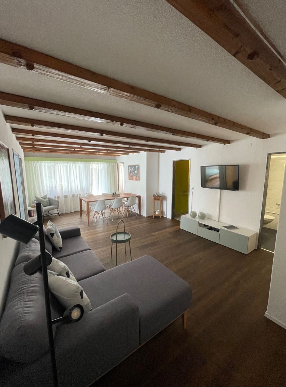 Neuwertige 4 1/2 Zimmerwohnung ca. 85 m2 in Mehrfamilienhaus im 1. Obergeschoss. 2 Schlafzimmer mit 2 Doppelbetten. 1 Schlafzimmer mit Französischem Bett, insgesamt 6 Betten. Bettwäsche, Küchentücher und Frottéewäsche vorhanden. Separate Küche mit Backofen, Toaster, Kühlschrank, Kaffeemaschine (Nesspresso), Wasserkocher, Geschirrspühlmaschine, Foudue- und Raclette-Set und weitere Küchengeräte. Bad und WC. Haustiere nicht erlaubt. Nichtraucherwohnung. TV (Apple TV). Gratis WLAN vorhanden. Skiraum im Keller. Aussenparkplatz. Terasse mit Sitzmöbel.