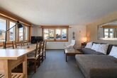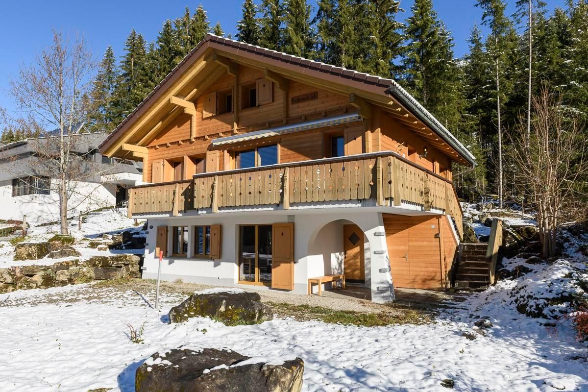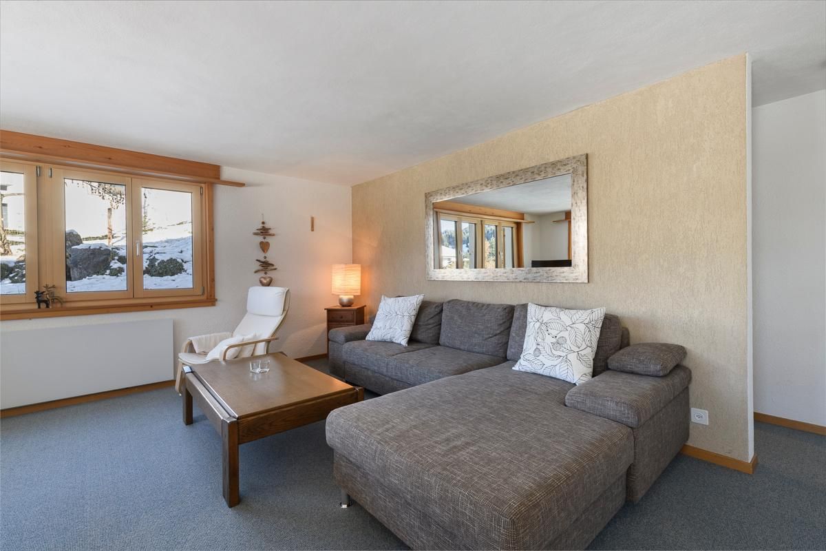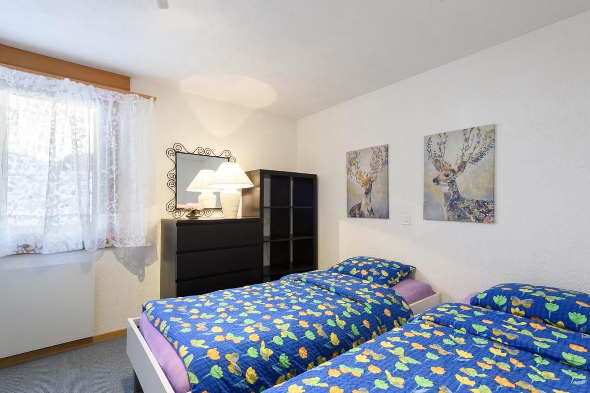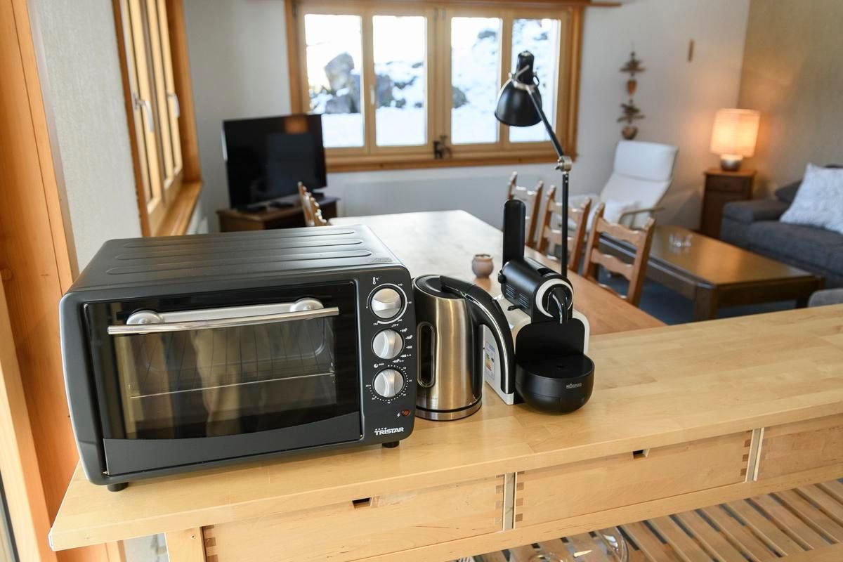 Im Inneren erwarten Sie zwei wohlige Schlafzimmer, eines mit einem Doppelbett und eines mit einem Etagenbett, ideal für Familien oder eine kleine Gruppe von Freunden. Das geräumige und gemütliche Wohnzimmer lädt zu entspannenden Abenden ein. In der kleinen offenen Küche finden sich alle notwendigen Apparate und Utensilien - von einem großen Kühlschrank, Keramikherd mit 4 Platten, Geschirrspüler bis hin zu einem Fondue Caquelon und Raclette Set für authentische Schweizer Abende. Ein Staubsauger und weitere Reinigungsutensilien, TV & WLAN ergänzen die Ausstattung für einen sorglosen Aufenthalt.