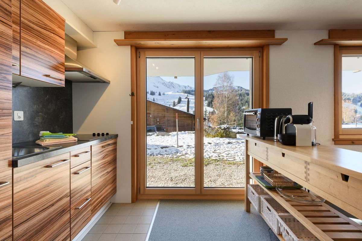 Draußen bietet die Wohnung Rothornblick eine herrliche sonnige Lage auf der Sonnenseite von Sörenberg. Der ebenerdige Zugang und die naturbelassene Umgebung sind perfekt für Familien, welche die kinderfreundliche Atmosphäre schätzen. Im Sommer wie im Winter bietet die Umgebung und der direkt angrenzende Wald ein prächtiges Areal zum Spielen und Entdecken. Der offene Parkplatz vor dem Haus und die ruhige Lage an einer Sackgasse ohne Durchgangsverkehr runden das äußere Angebot ab.