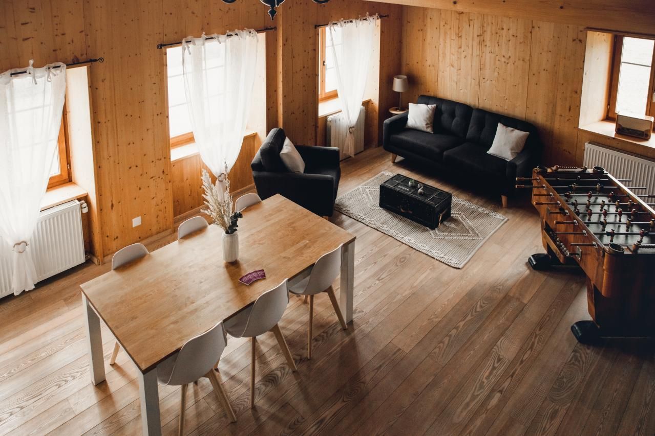 Genießen Sie den Charme eines renovierten Neuenburger Bauernhauses, in dem Tradition und Moderne miteinander harmonieren. Unsere 165 m² große Wohnung, die sich über drei Etagen mit Zwischengeschoss erstreckt, bietet einen geräumigen und geselligen Rahmen für einen unvergesslichen Aufenthalt.