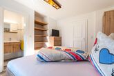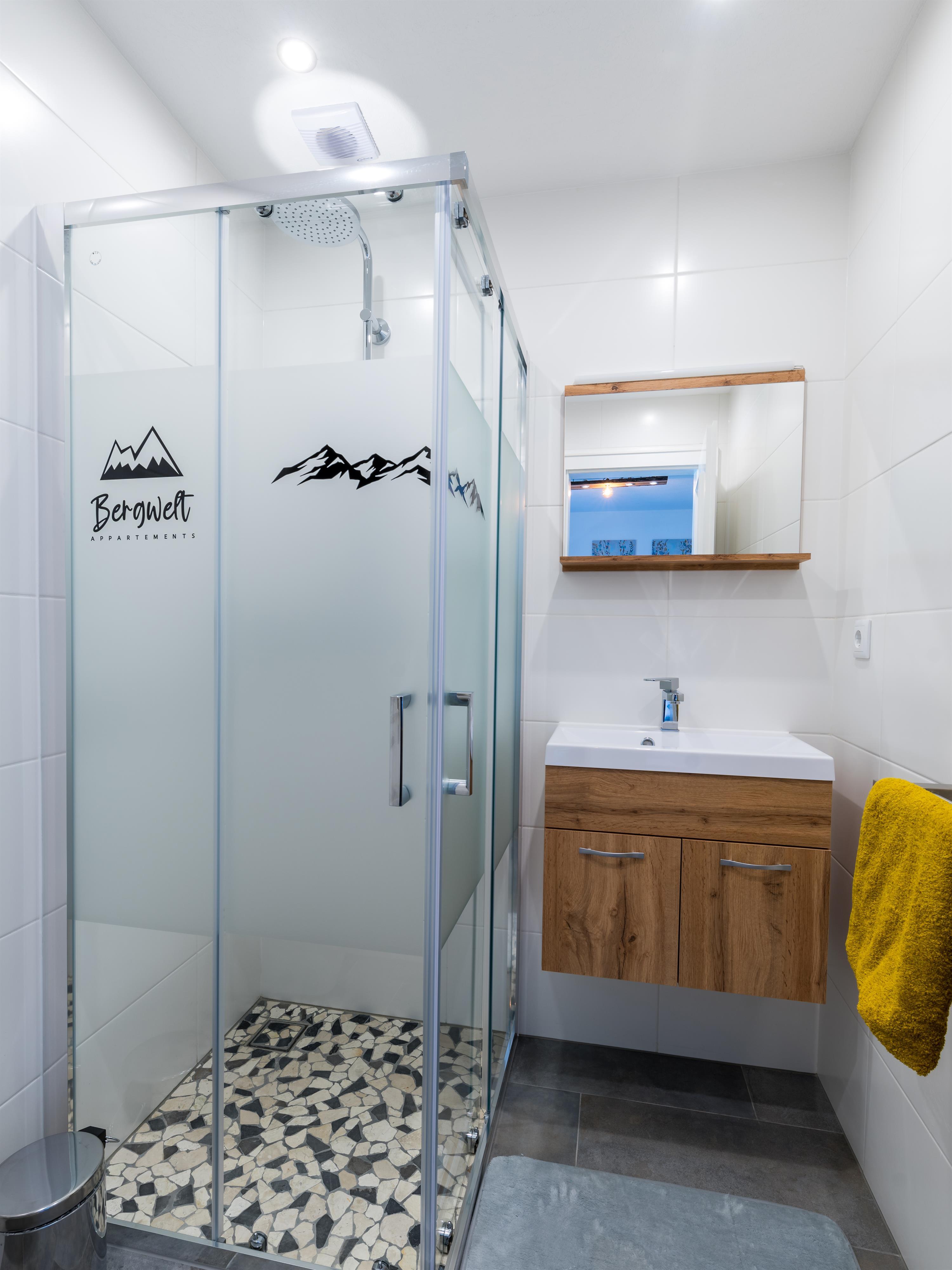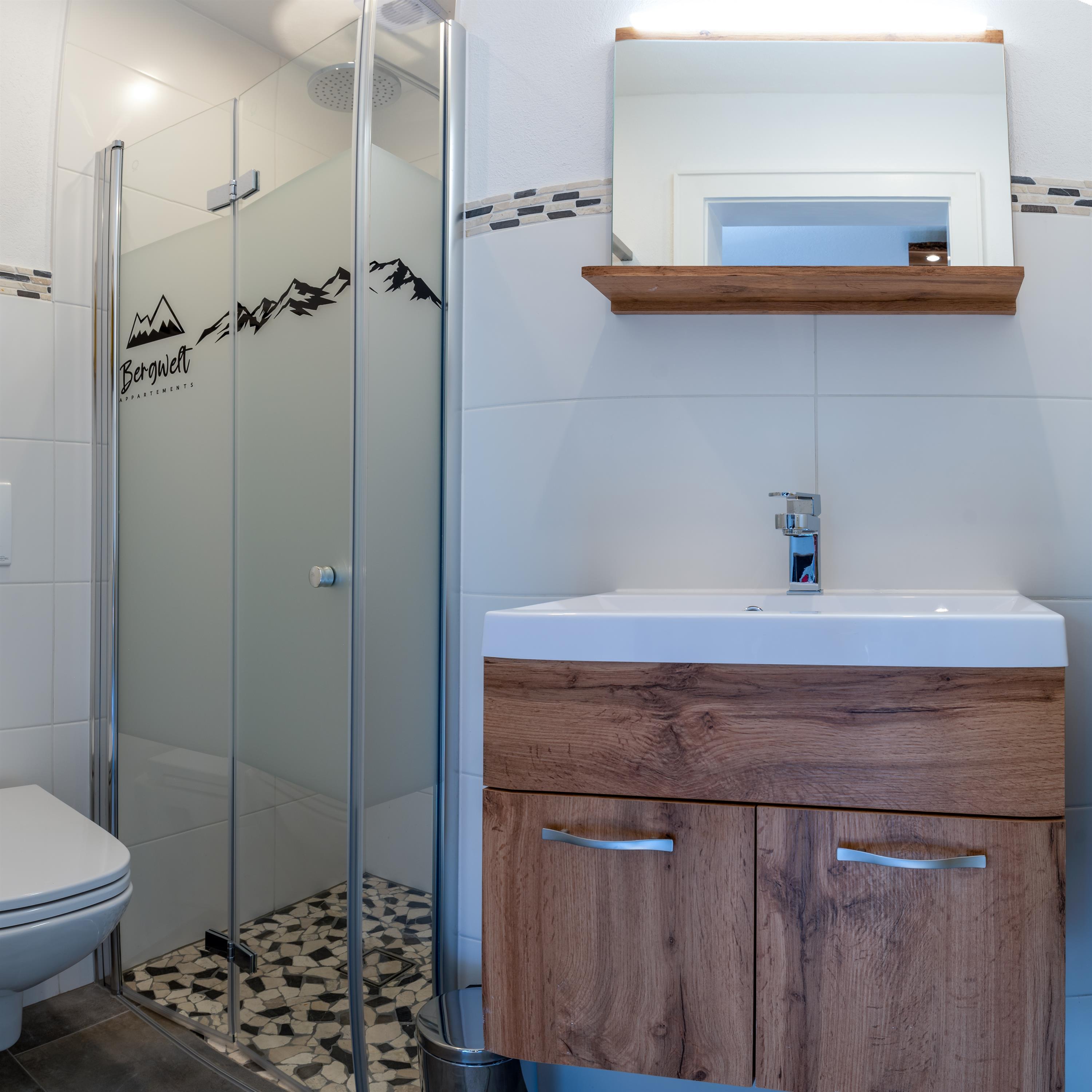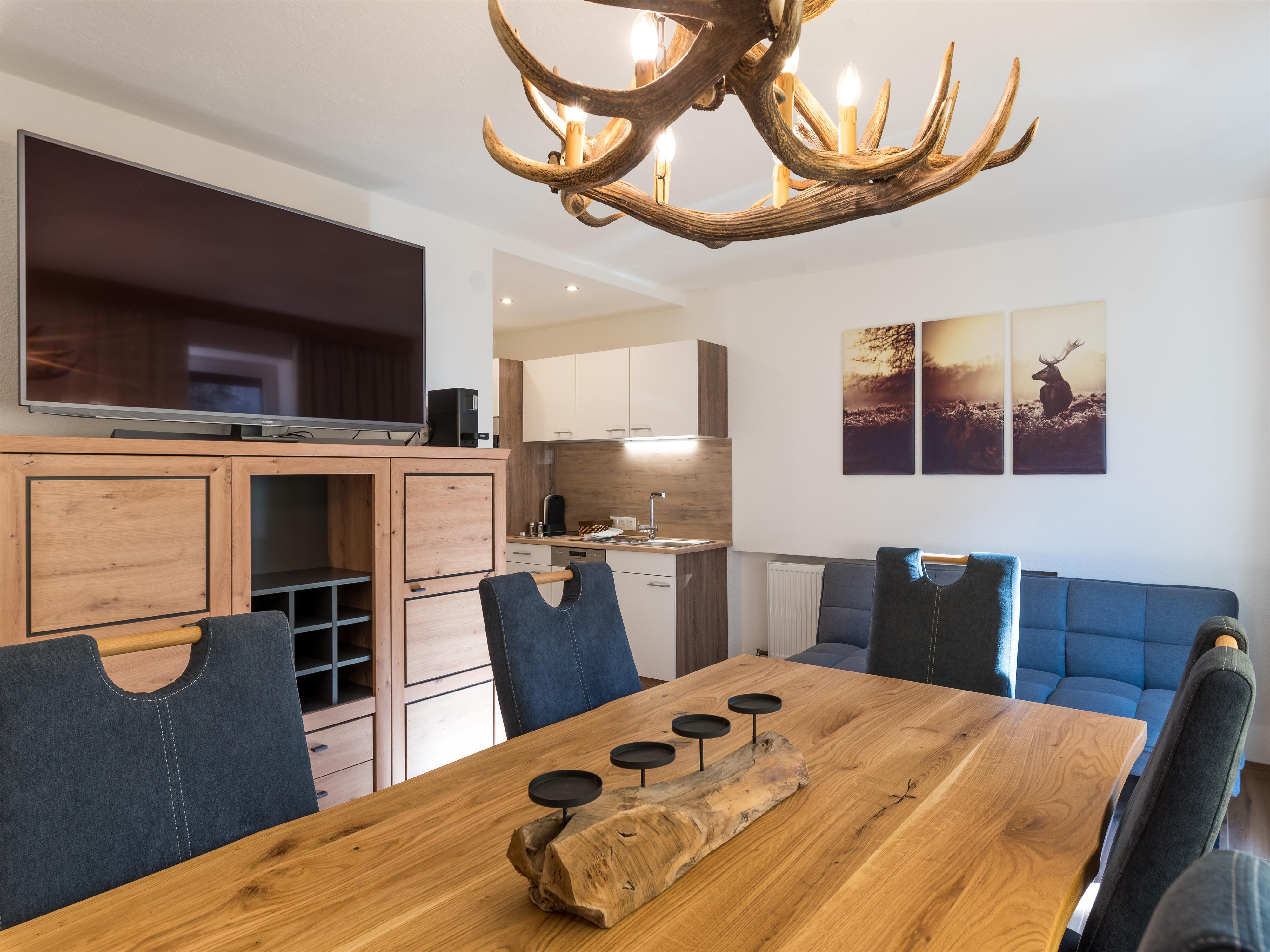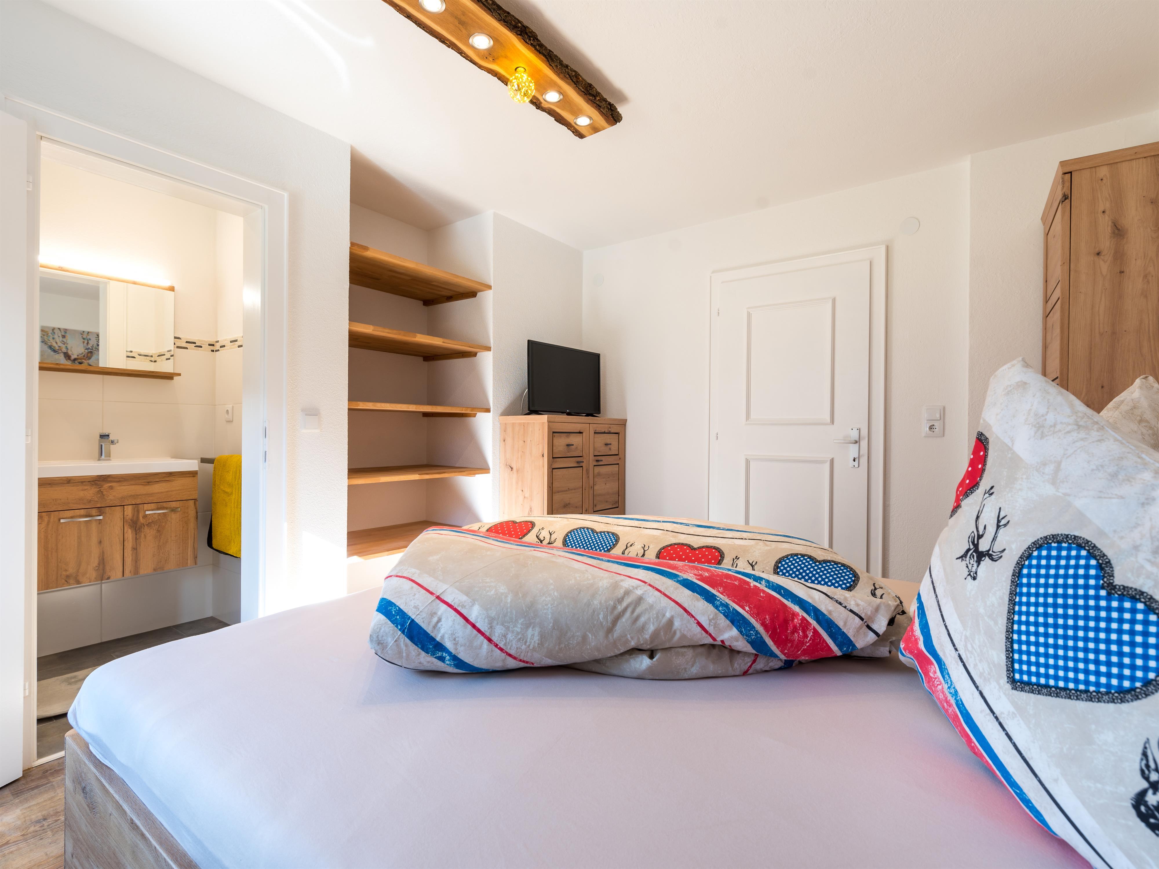 Hochwertig und modern eingerichtetes Appartement im 1. Stock mit ca. 55 m² besteht aus: 2 Schlafzimmern; jedes mit eigenem Badezimmer mit Dusche/WC und modernen TV´s, einer vollausgestatteten Wohnküche mit Kühlschrank, Cremesso Kaffeemaschine (passende Kapseln können vor Ort erworben oder selbst mitgebracht werden), Elektroherd uvm; gemütlicher Wohnbereich mit Sat-TV; von allen Räumen haben Sie Zugang zum Balkon