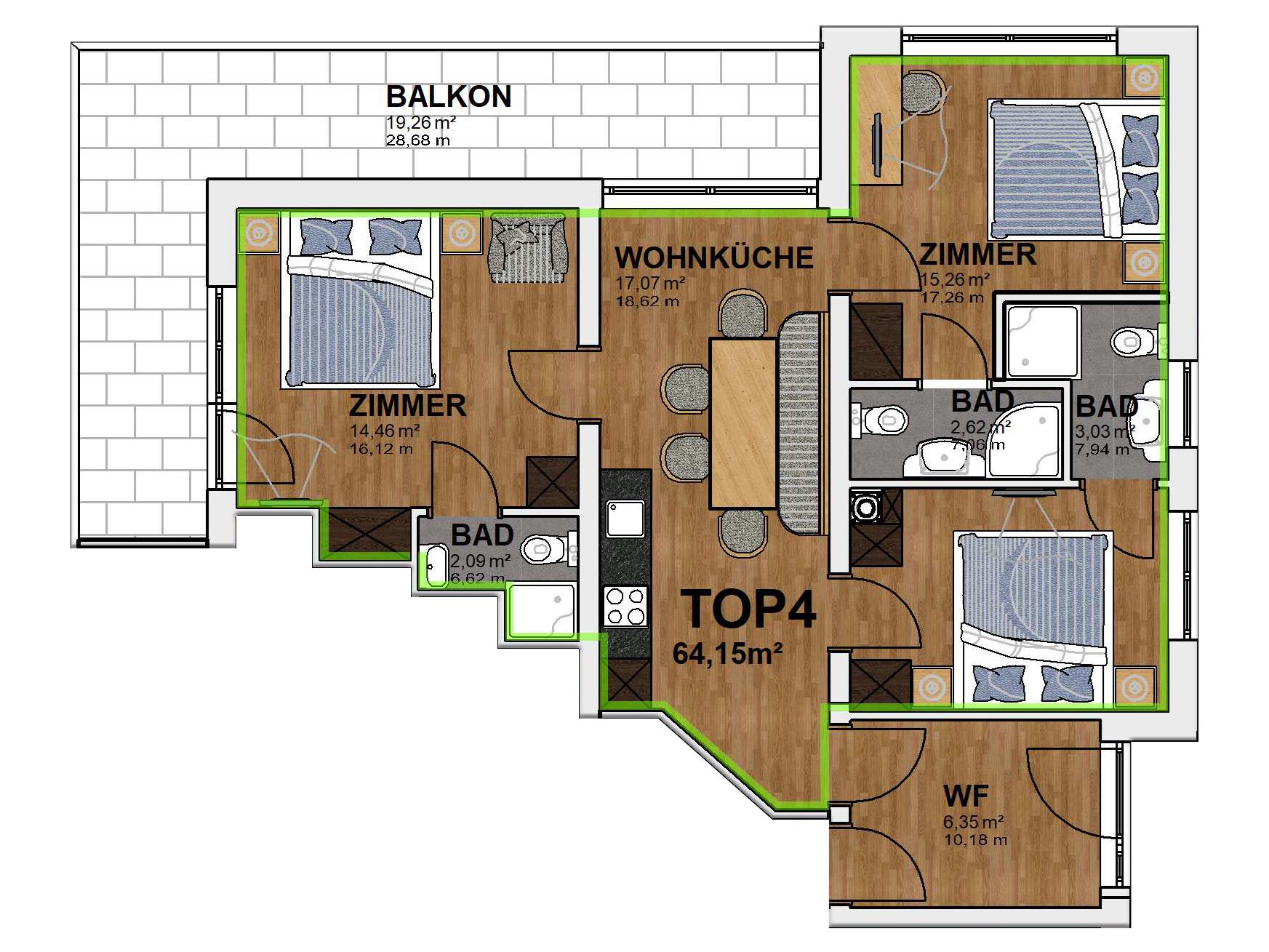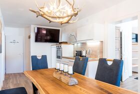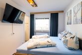 Hochwertig und modern eingerichtetes Appartement im 1. Stock mit ca. 65 m² besteht aus: 3 Schlafzimmern; jedes mit eigenem Badezimmer mit Dusche/WC und modernen TV´s, einer vollausgestatteten Wohnküche mit Kühlschrank, Geschirrspüler,Cremesso Kaffeemaschine (passende Kapseln können vor Ort erworben oder selbst mitgebracht werden), Elektroherd uvm.; gemütlicher Wohnbereich mit Sat-TV; von allen Räumen haben Sie einen direkt Zugang zum möblierten Balkon