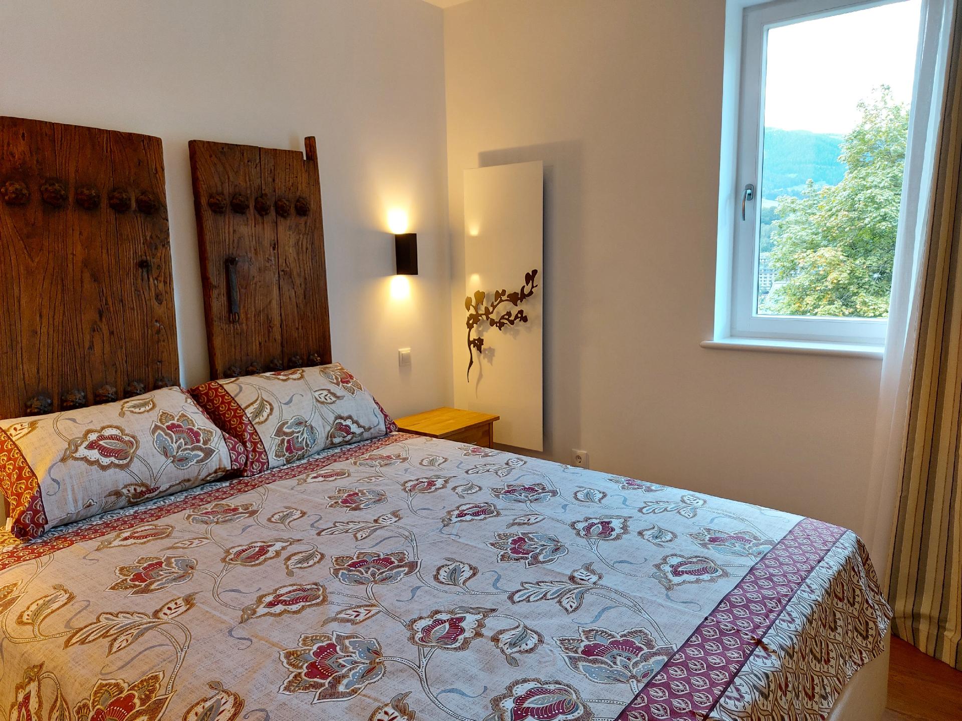 Draußen lädt ein großer Balkon mit einem atemberaubenden Blick auf das Tal zum Entspannen ein - der perfekte Ort, um an warmen Sommerabenden zu verweilen. Für Ihr Fahrzeug ist mit einem überdachten Parkplatz bestens gesorgt, sodass Sie sich um die Sicherheit Ihres Autos keine Sorgen machen müssen.