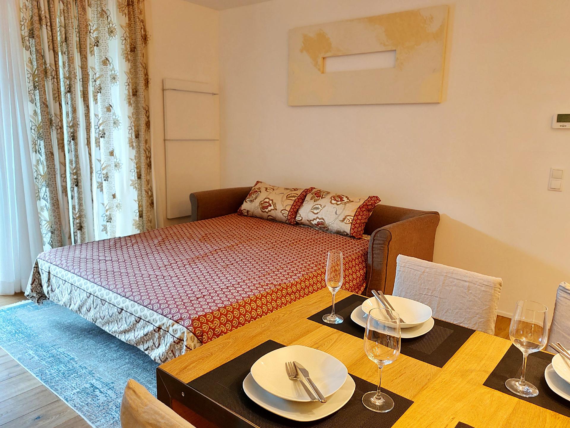 Im Inneren des Apartments erwarten Sie einladende Räume, die mit neutralen Farben und Naturholz gestaltet sind, um eine ruhige und erholsame Atmosphäre zu schaffen. An kühlen Winterabenden sorgt ein schöner Holzofen für zusätzliche Gemütlichkeit. Die Küche ist voll ausgestattet mit einem Induktionskochfeld, Mikrowelle, Kühlschrank, Geschirrspüler und einer Nespresso-Kaffeemaschine, die selbst den anspruchsvollsten Genießer zufriedenstellen werden. Das Badezimmer ist modern eingerichtet mit einer Dusche und einem Bidet, um Ihren Komfort zu gewährleisten.