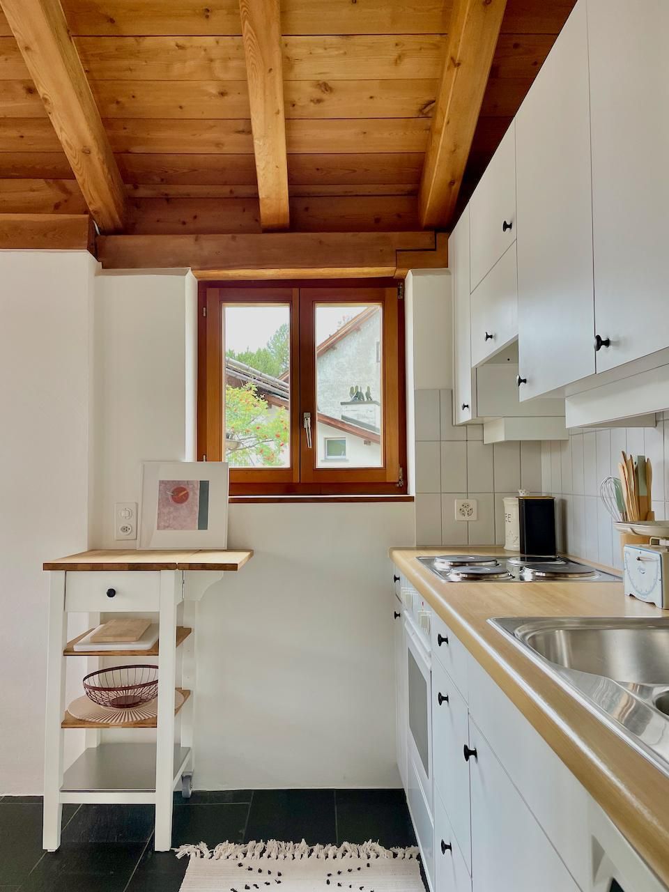 Innert 5 Gehminuten erreicht man die Skianlage, diese führt nach Marguns und Corviglia (St.Moritz). Sowohl im Sommer als auch im Winter ist es ein idealer Ausgangspunkt für Wanderungen und sportliche Aktivitäten (Alle Skisportarten, Snowboarden, Eislaufen, Biken, Tennis) in der Region. Die 3.5 Zimmerwohnung im 1. Stock, die 2022 renoviert wurde, zeichnet sich durch ihren warmen und gemütlichen Stil aus. Es verfügt über ein Wohnzimmer mit Küche, zwei Doppelschlafzimmer, zwei Bäder und eine Terrasse. Im Wohnzimmer befinden sich der Esstisch, eine Entspannungsecke mit Sofa und Sessel sowie die gut ausgestattete Küche (von der Bialetti-Mokkakanne bis zum Caquelon für Fondue sowie Öl, Essiggewürze, Tee und Kaffee). Ein Schlafzimmer hat ein Doppelbett (160x200), einen Kleiderschrank und einen Arbeitstisch. Das zweite Schlafzimmer hat zwei Betten, eines für Einzel- oder Doppelbelegung (140x200) und eines für Einzelbelegung (80x190). Die Terrasse ist mit einem Tisch und Liegestuhl (im Sommer) ausgestattet.