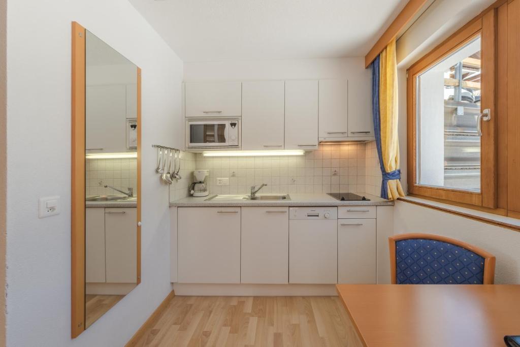 Das Studio verfügt über einen integrierten Wohn- und Schlafraum mit Küche. Das Badezimmer ist abgetrennt vom Raum. Ein Balkon auf der Sonnenseite ist vorhanden. Die Wohnung ist sehr gut ausgestattet mit vollausgestattet Küche, W-Lan, Blue-TV und Apple TV Box. Die Küche verfügt über Mikrowelle, 2 Herdplatten, Kühlschrank mit kleinem Gefrierfach sowie Abwaschmaschine.