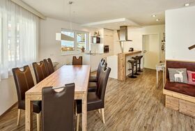 Wohlfühl Terrassenapartment mit ca. 89 m²: 2 Doppelzimmer, 1 Schlafzimmer mit Stockbetten für 4 Personen und Zustellbetten, 2 Badezimmer mit Dusche/WC, 1 Badezimmer mit Badewanne/WC, vollausgestattete Wohnküche mit LED Lichthighlights, Dampfgarer, Cerankochfeld........